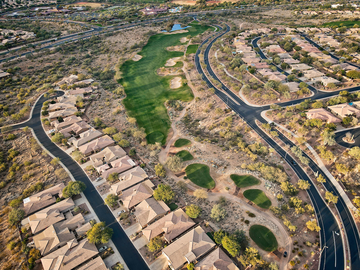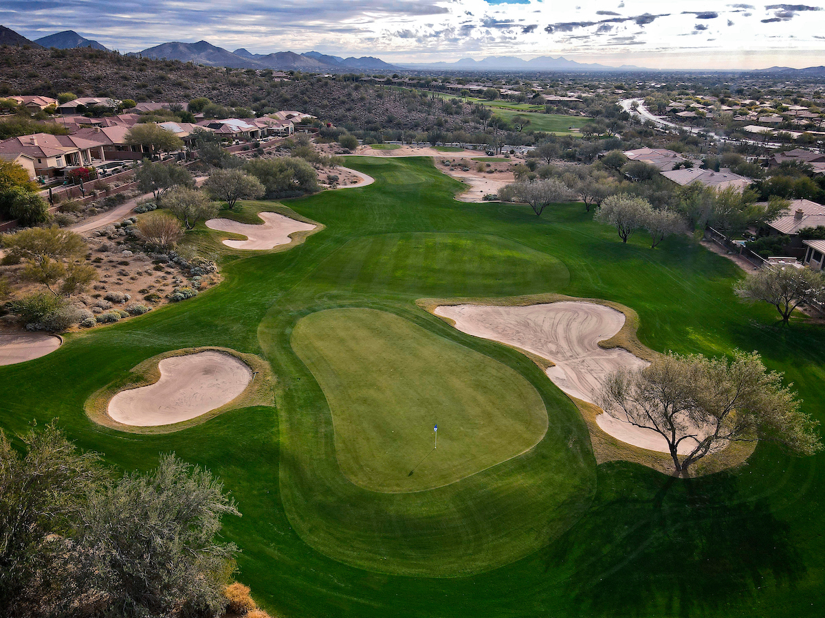 The Persimmon Course, which opened to rave reviews in 1999 as a Scottsdale private golf course, features elevation changes from 50 feet to 300 feet. It’s the more traditional of the two Anthem, Arizona golf courses, which features a signature, 18,000 square foot double green that concludes both the front and back nines. Perhaps the most notable is the final stretch of holes 15 through 18 that makes for a strong finish.