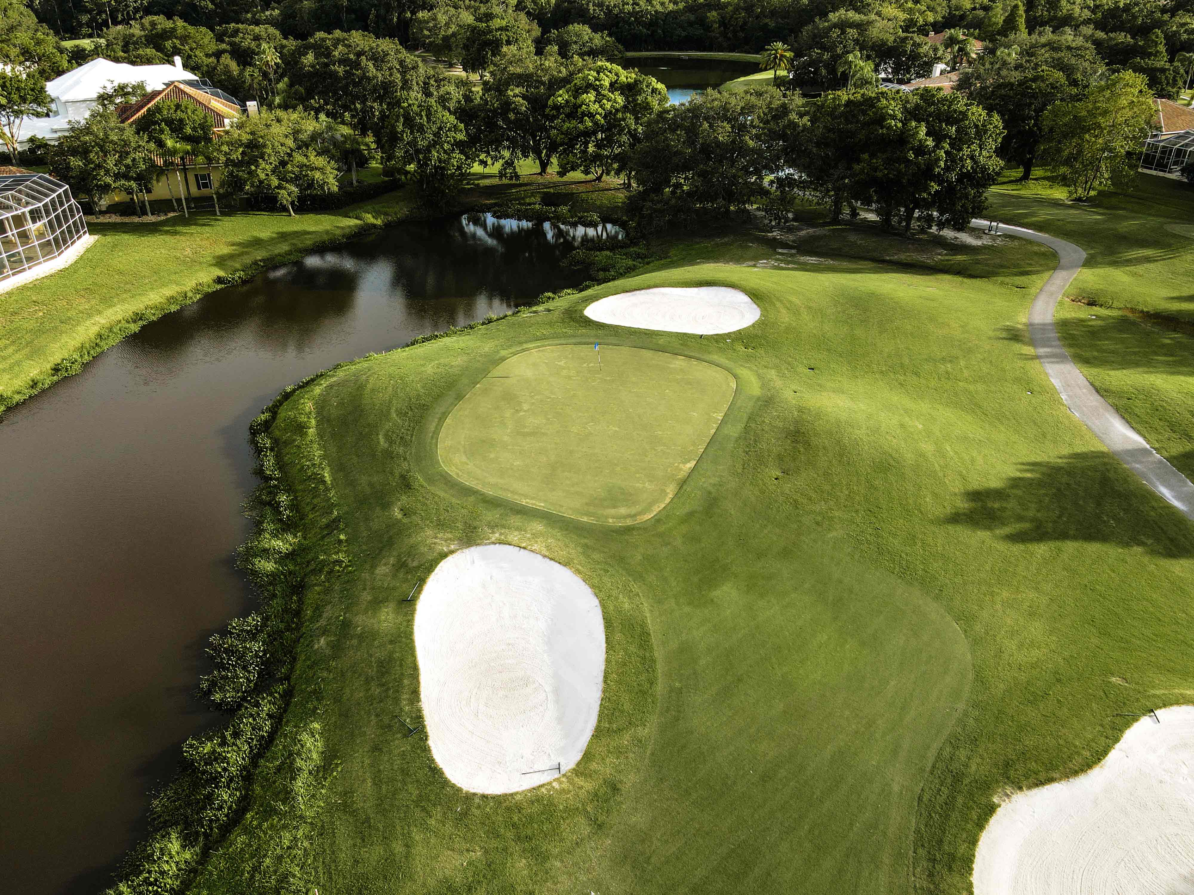 | Challenging par 4, good tee sheet will leave a mid iron to the green, missing left of the green is a sure double bogey |