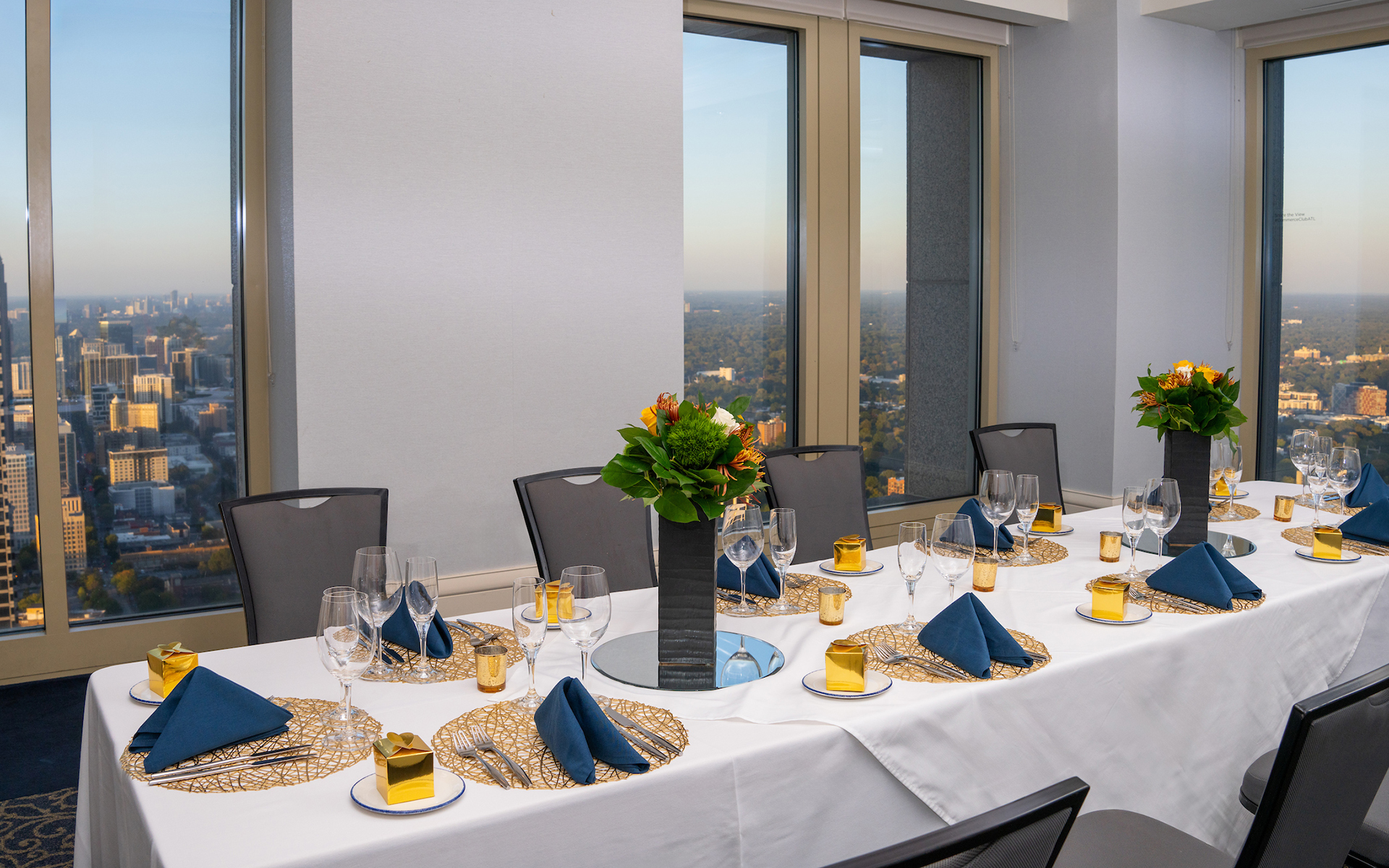 Elevate your Atlanta events to new heights of sophistication at The Commerce Club Atlanta. Unlike other venues, we offer a guest-gasp guarantee. What’s that? We’re glad you asked. Our first-class service, delectable cuisine, and spectacular downtown Atlanta views are sure to leave your guests awestruck. With 12,850 square feet of meeting rooms and event venues, The Commerce Club Atlanta caters to corporate and social events of every scale and type – the sky’s the limit.