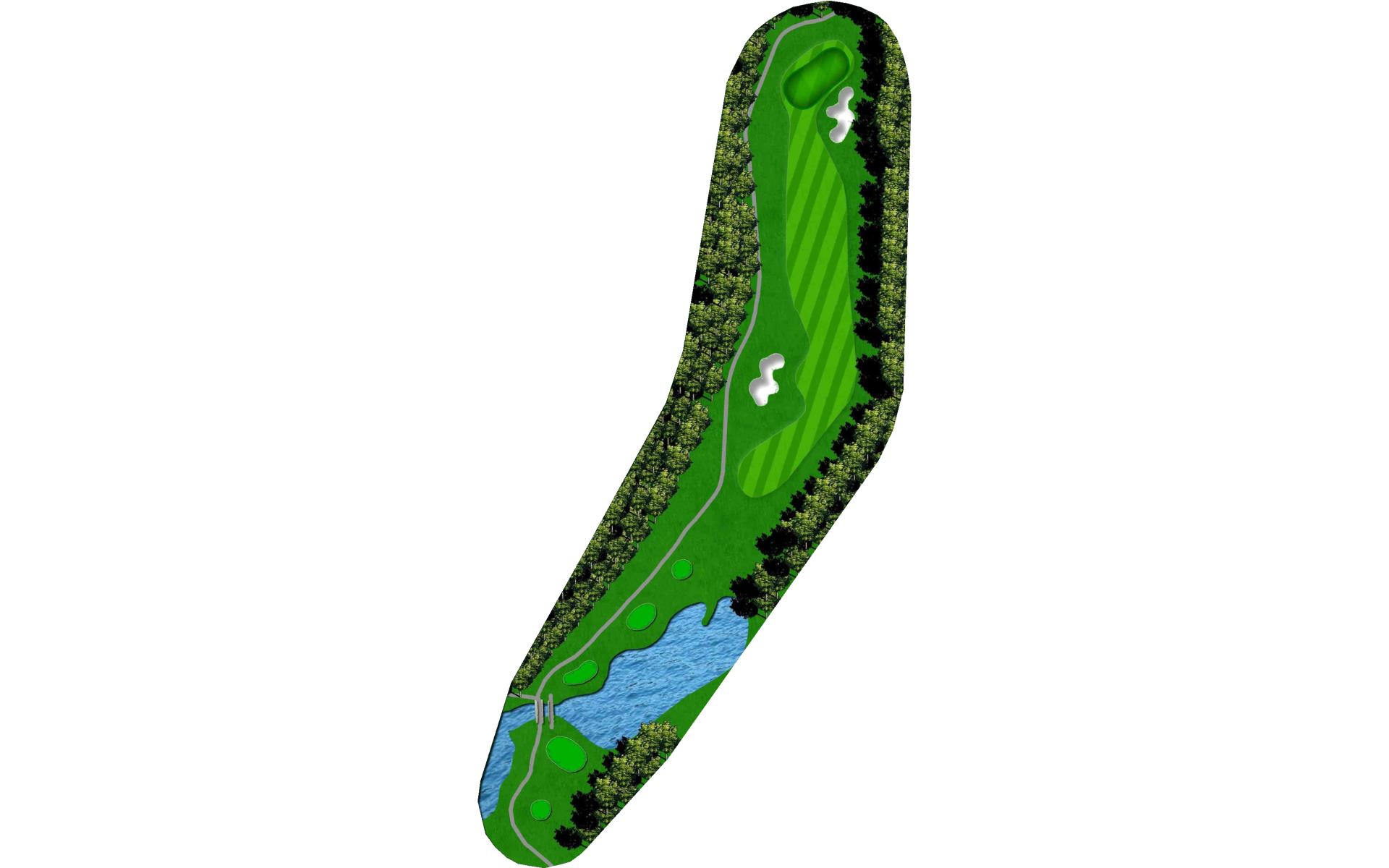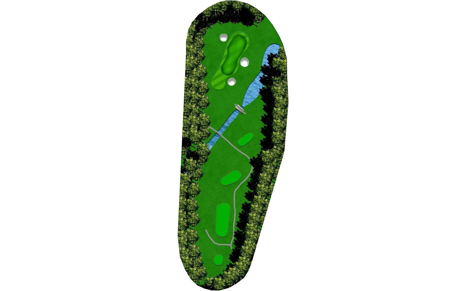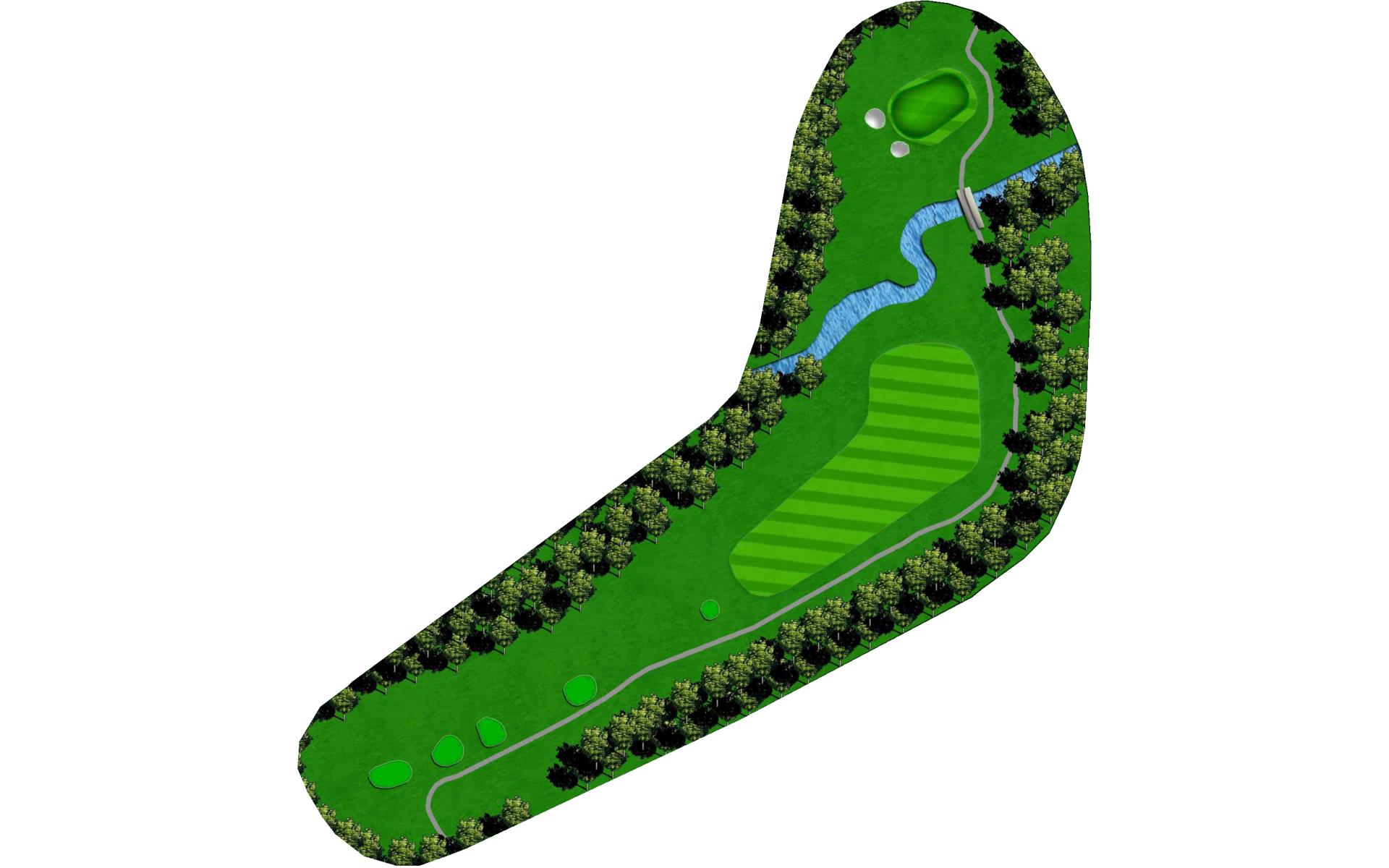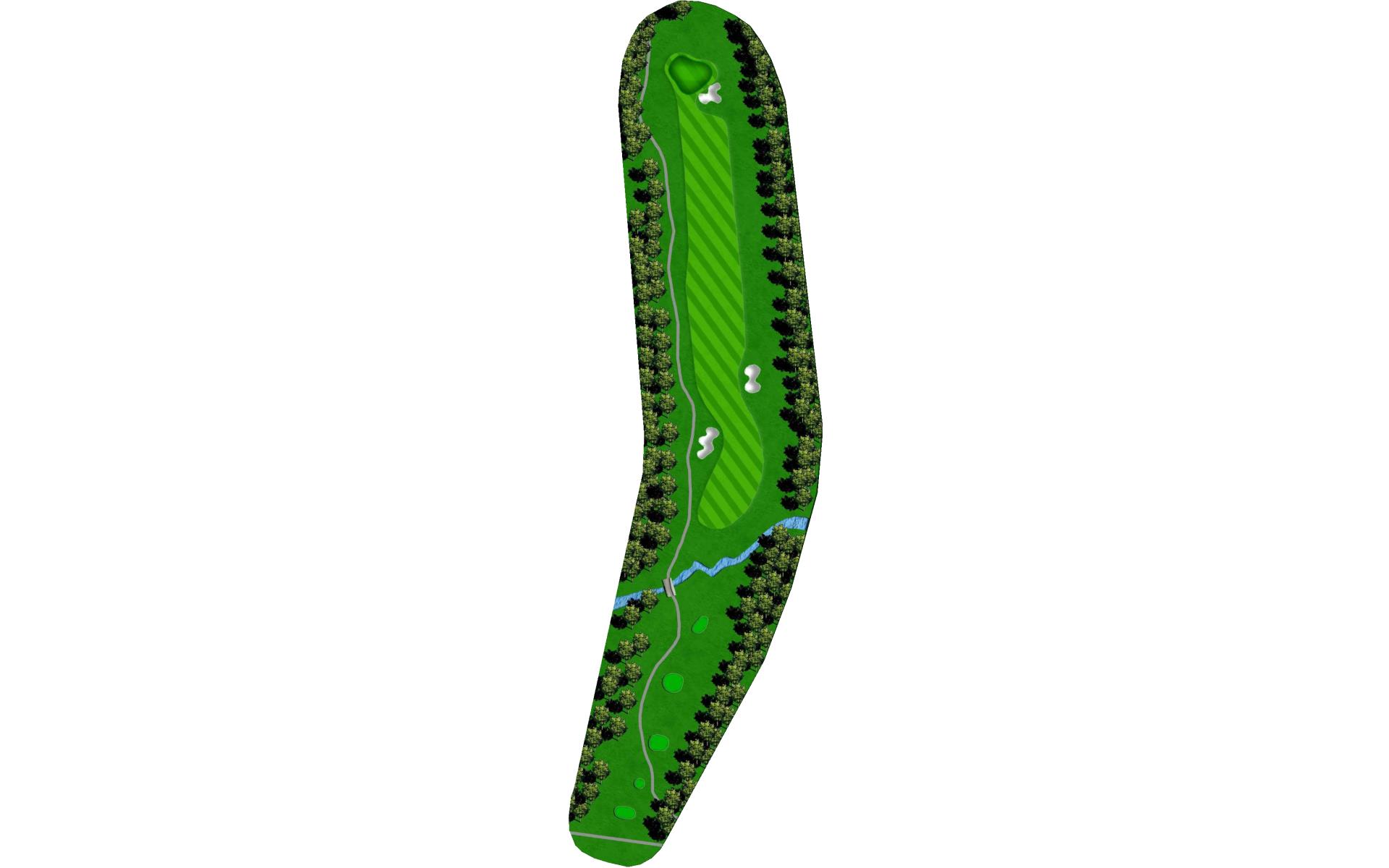 This straightaway par 3 plays over a creek. Tee shots should favor the left as there’s a severe slope on the right.