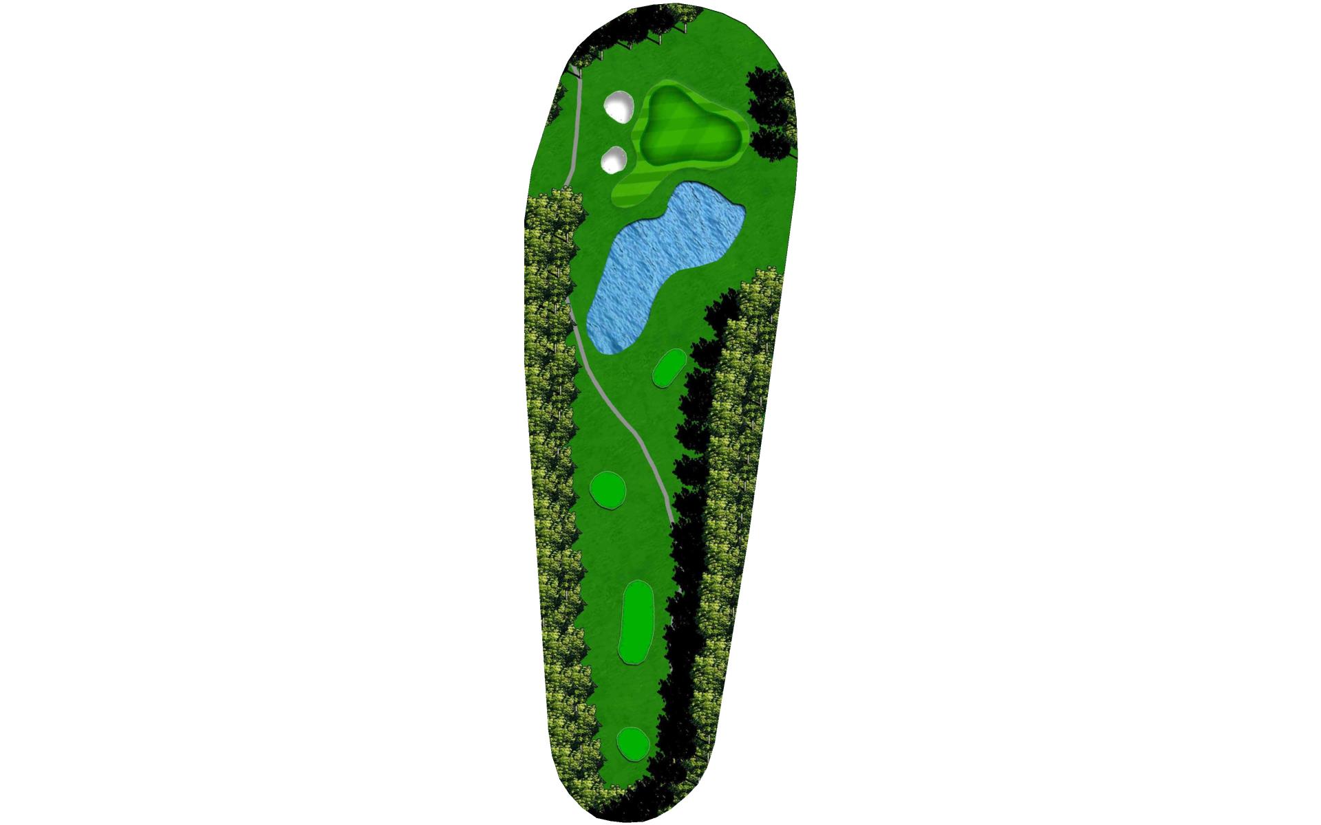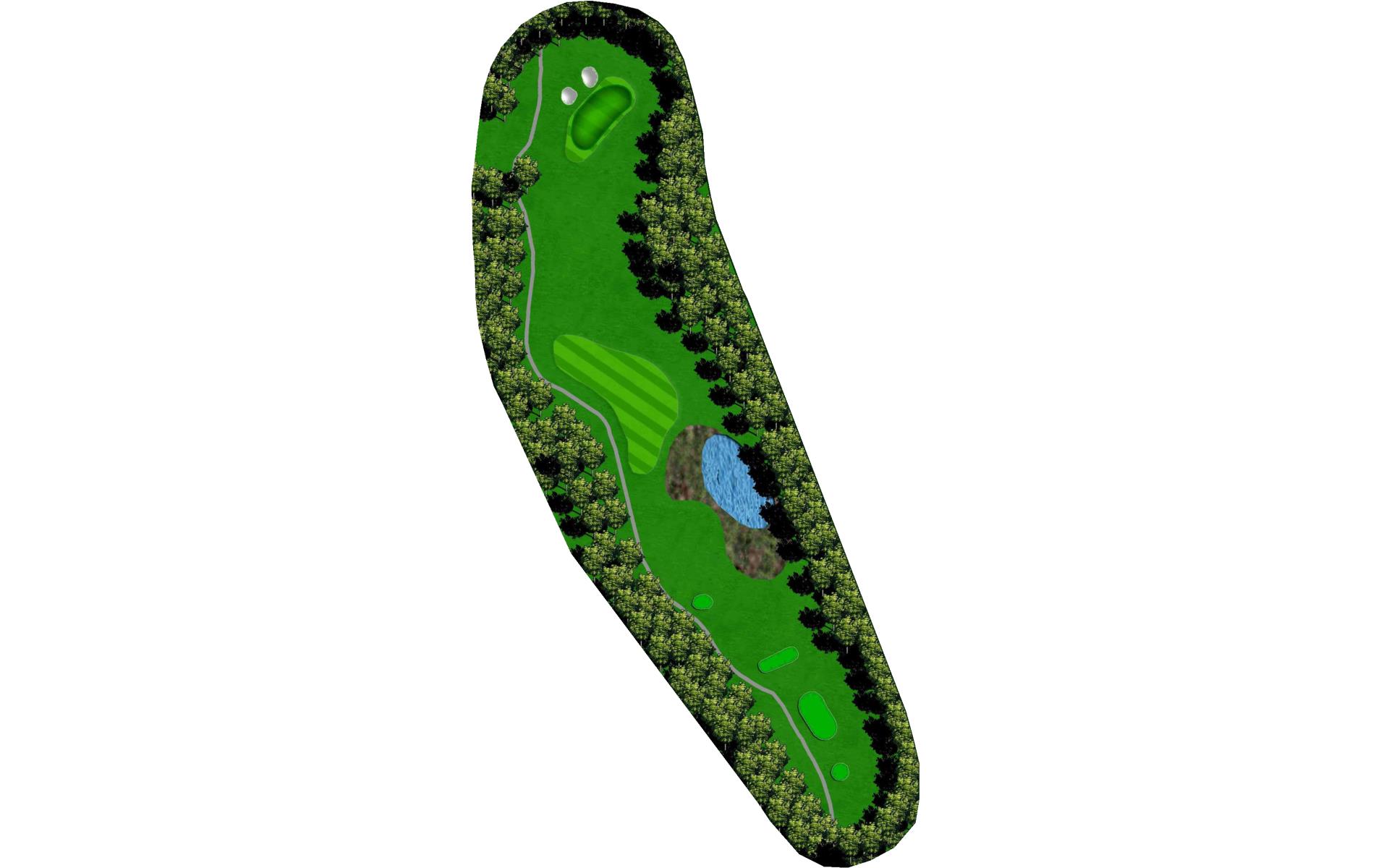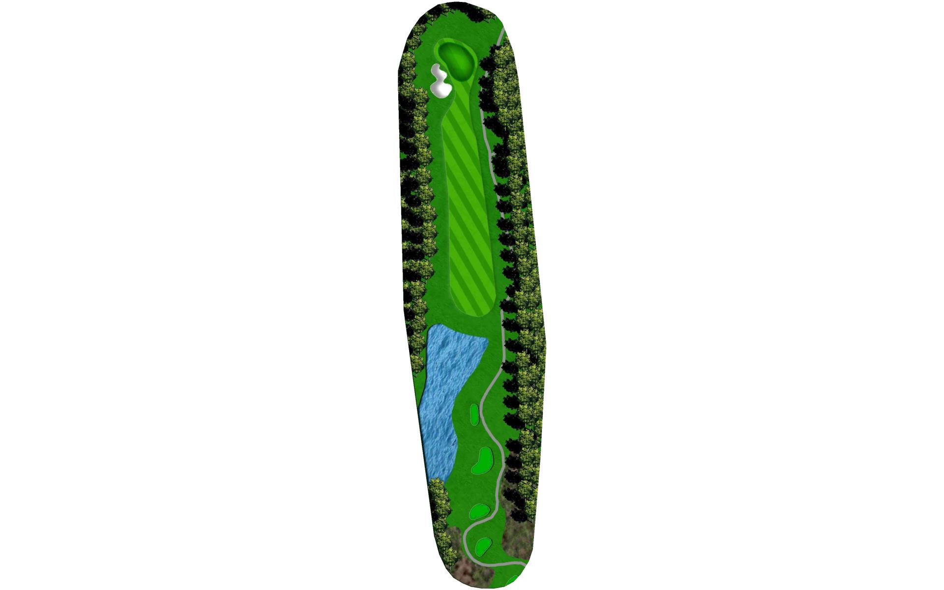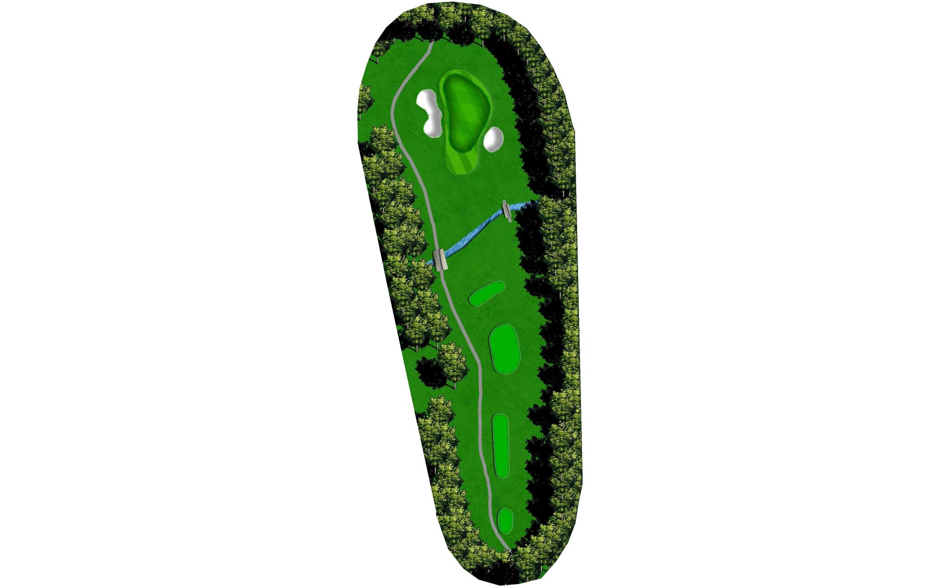 This straightaway par 3 plays over a creek. Tee shots should favor the left as there’s a severe slope on the right.