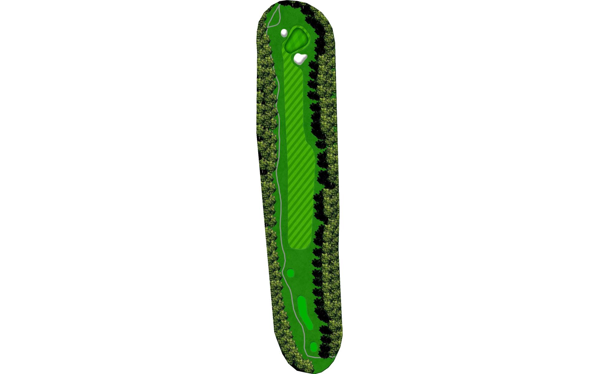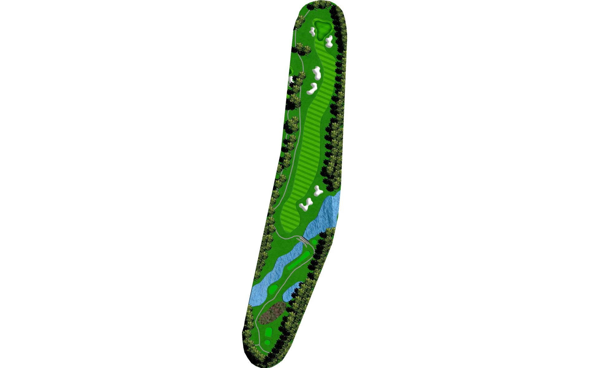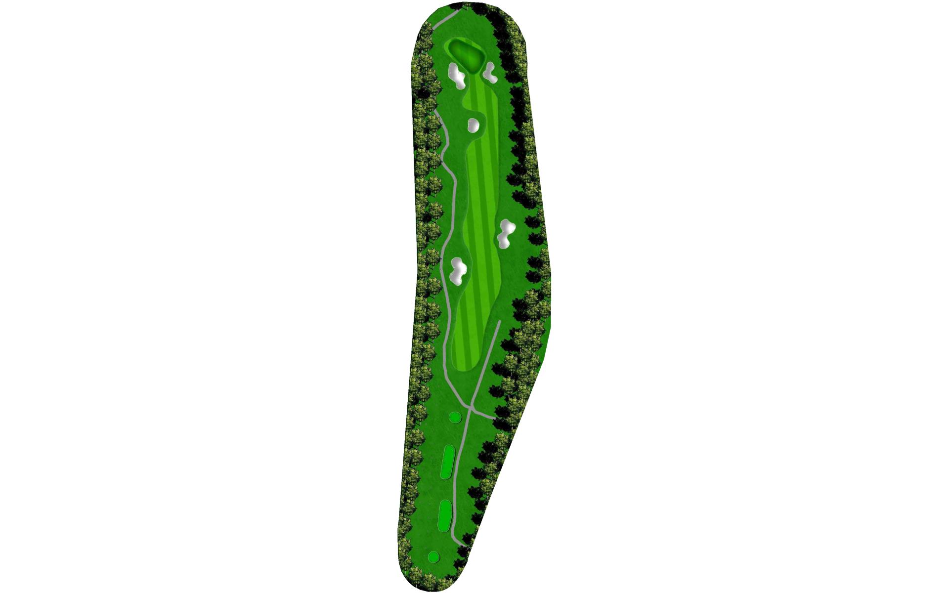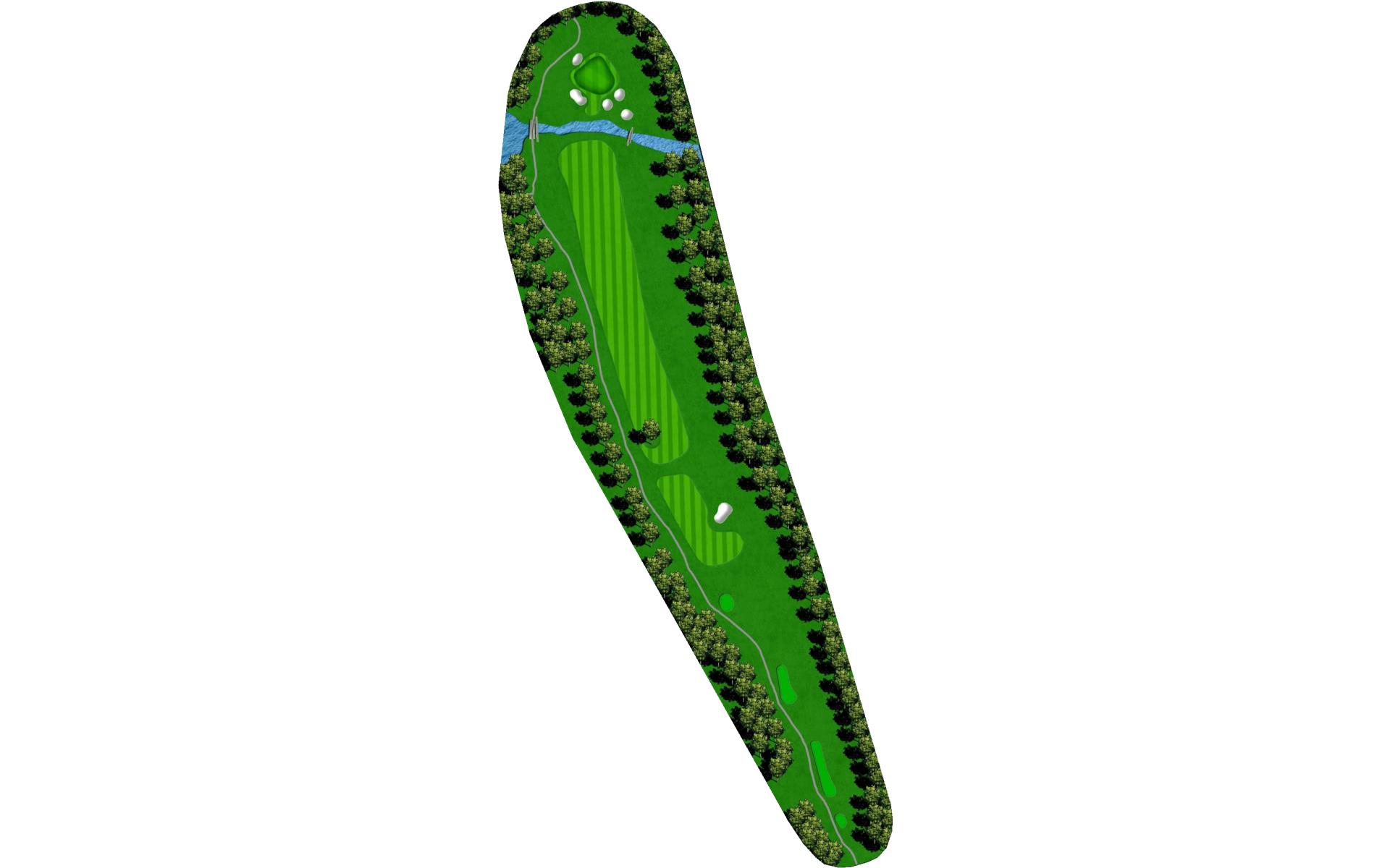 This straightaway par 3 plays over a creek. Tee shots should favor the left as there’s a severe slope on the right.