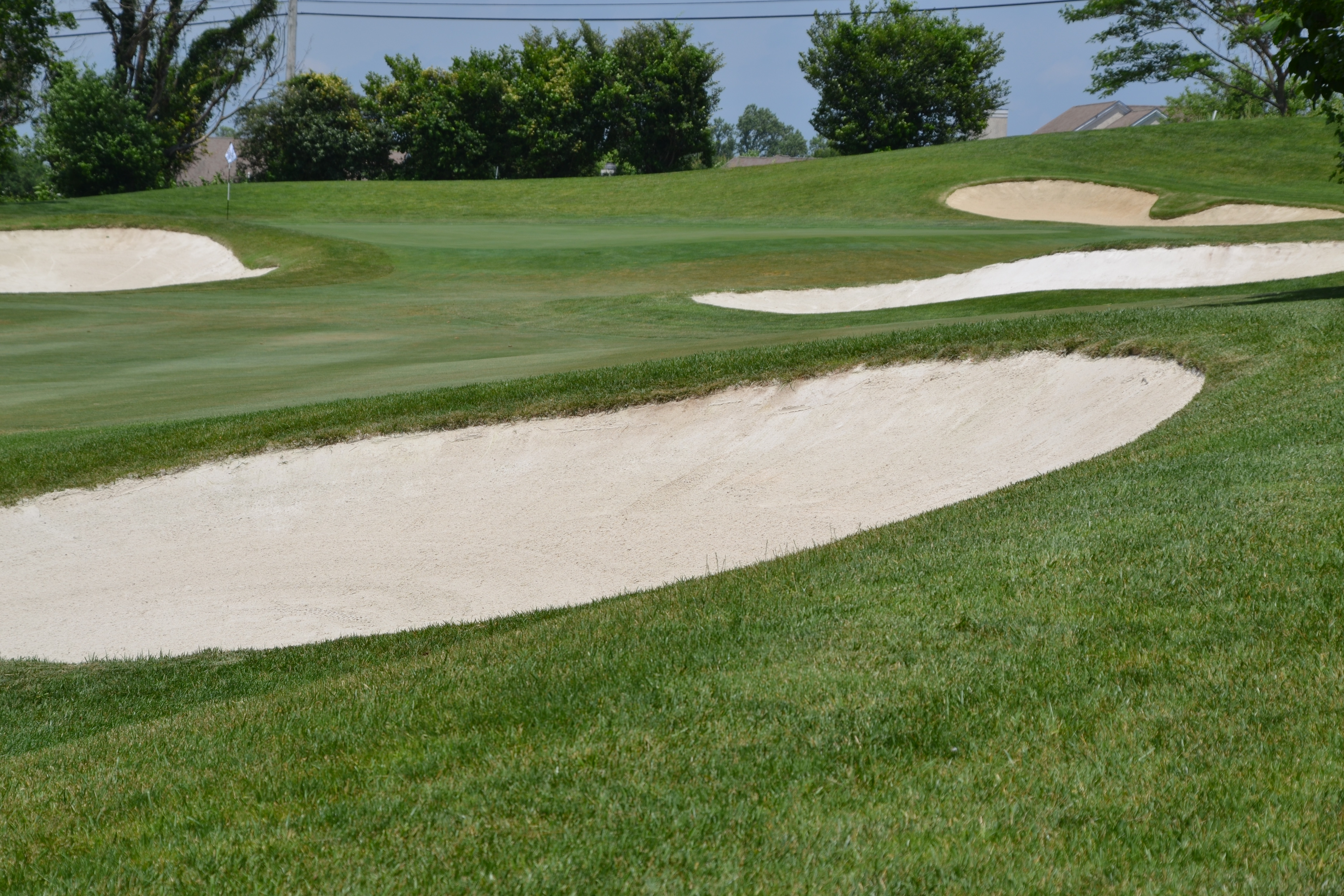 Two large swales make this short par 4 an excellent test of accuracy. From the tee, left and right bunkers border the first swale. In front of the green, a deep second swale makes the hole look deceptively short, making club selection important.