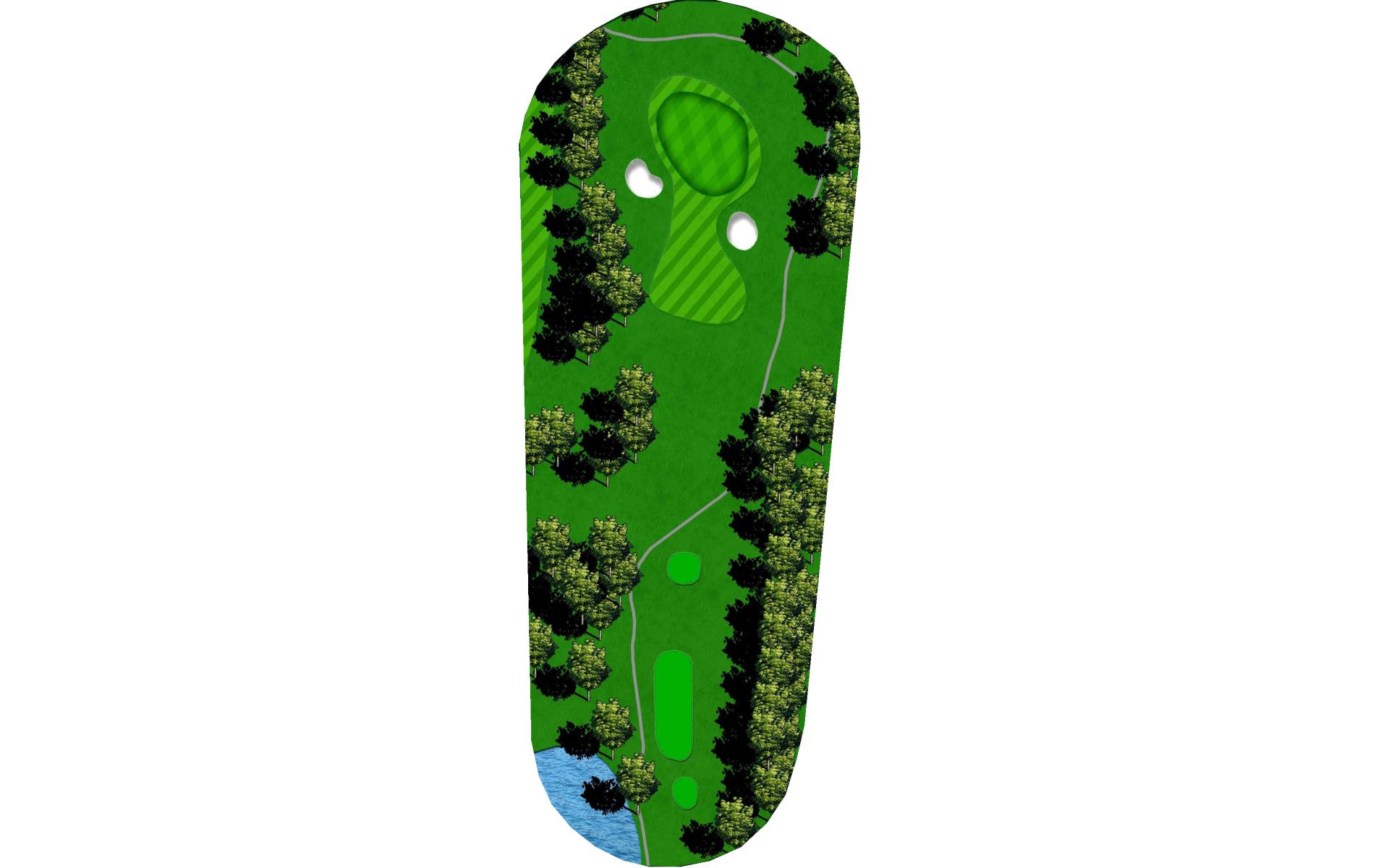 Slight dogleg right requires a drive center to left of the fairway to open up your approach shot to the green. The green is at an angle so proper club selection is a must. Plenty of room right of the green allows you room to save par.