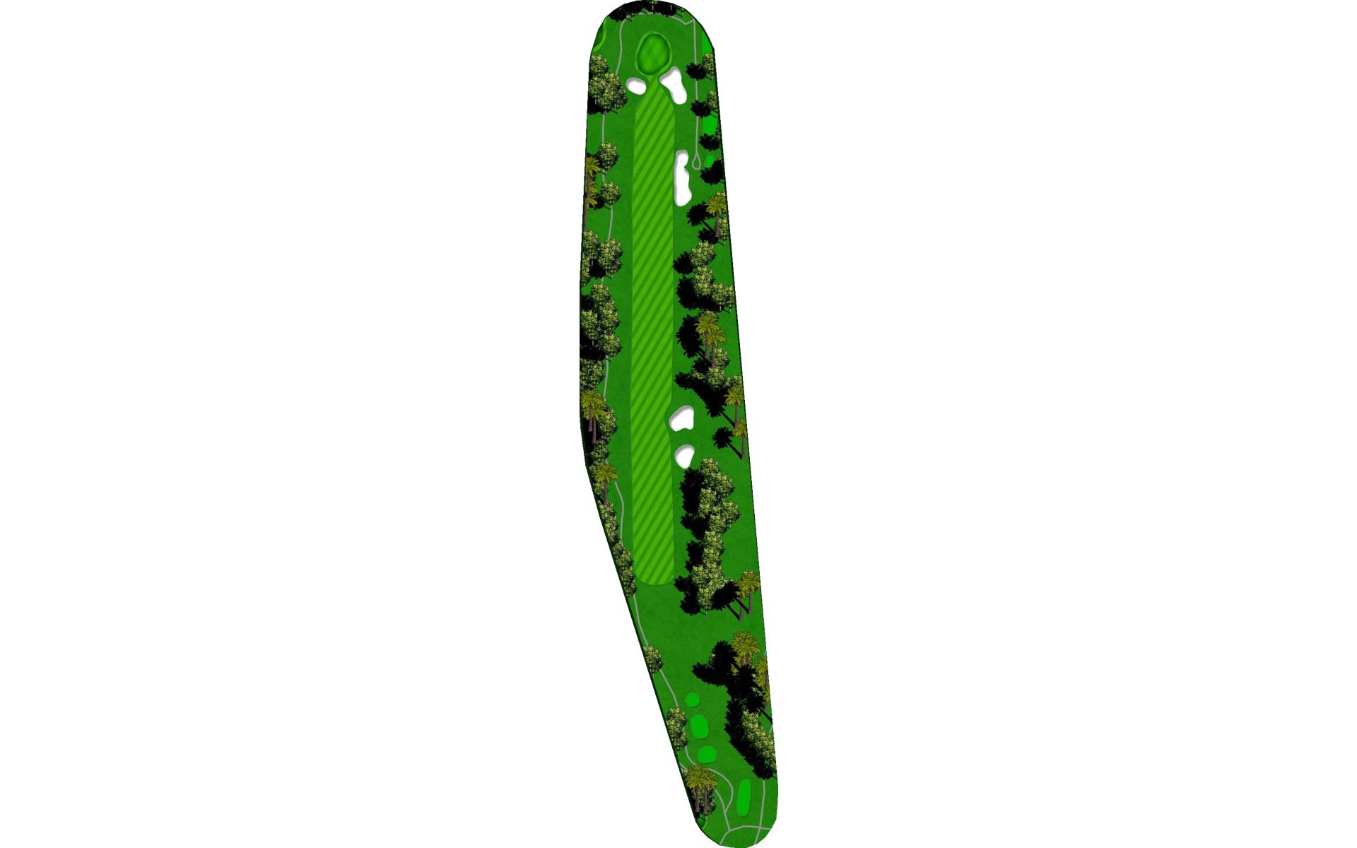 Short par 4 with a narrow fairway - trouble and wash on the left - bunkers right but scoreable from the fairway.
