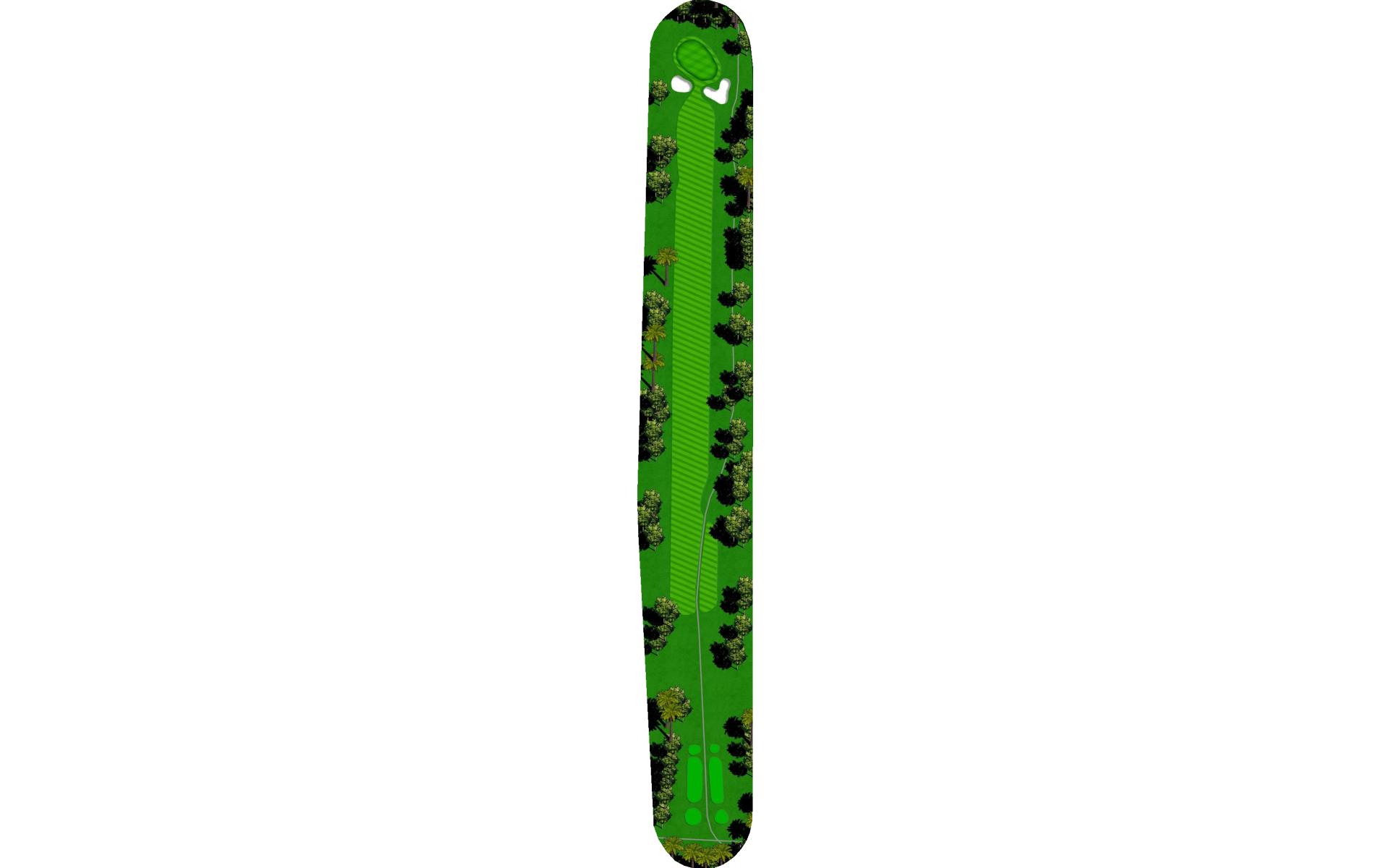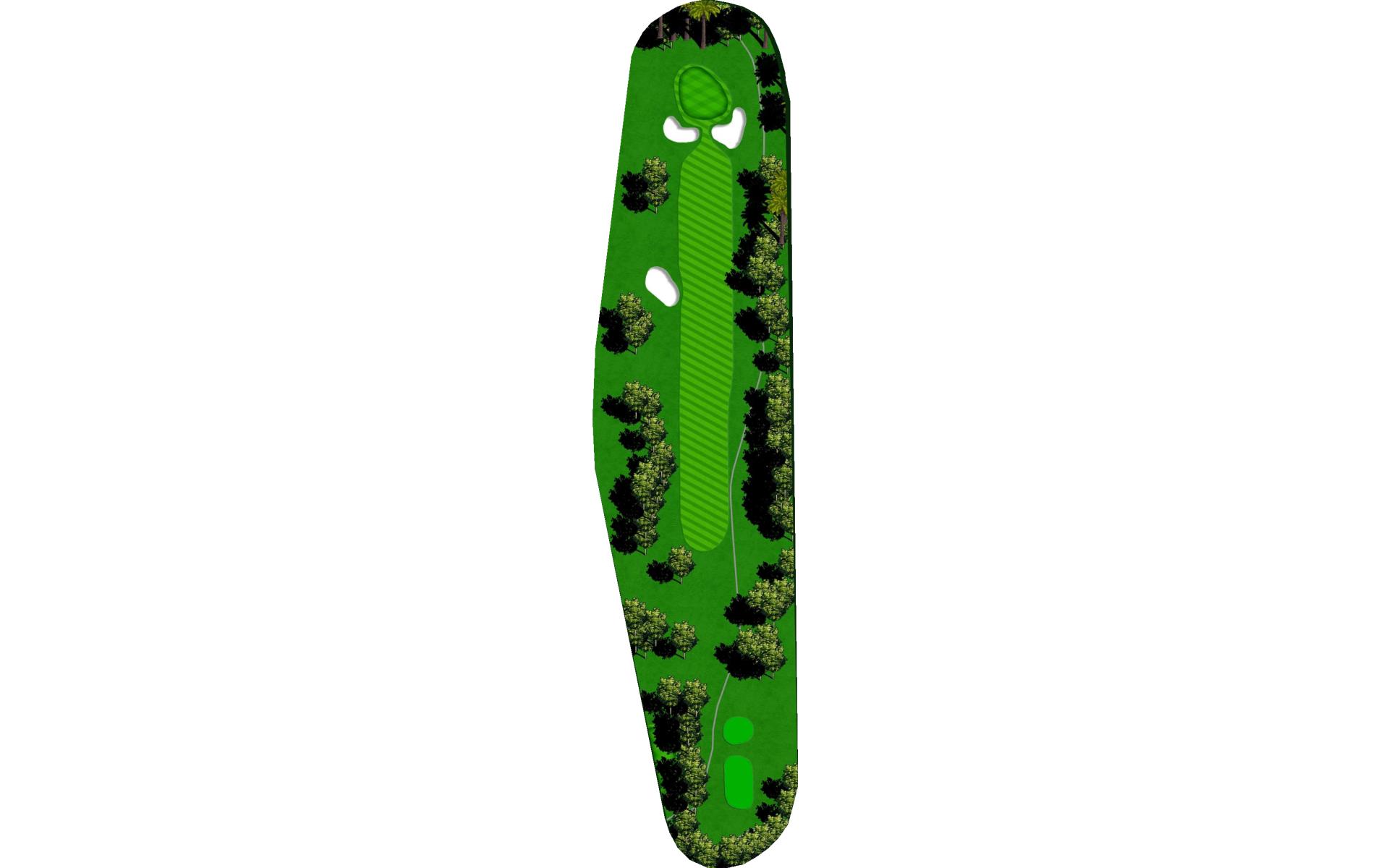 Tee shot out of a shoot off the back tee demands an accurate shot, but the green has little movement. If you get it on, you have a shot to drain it from anywhere.