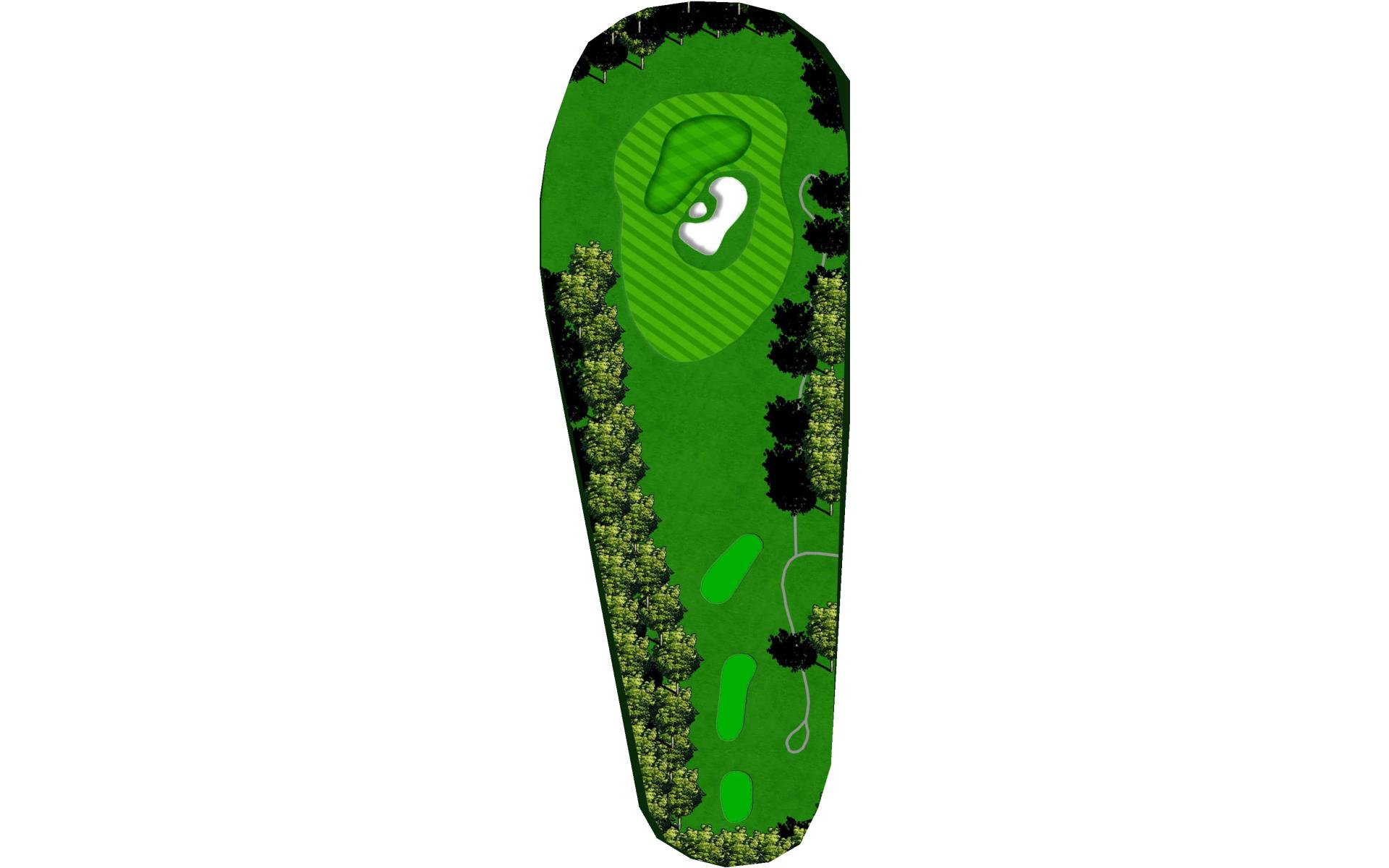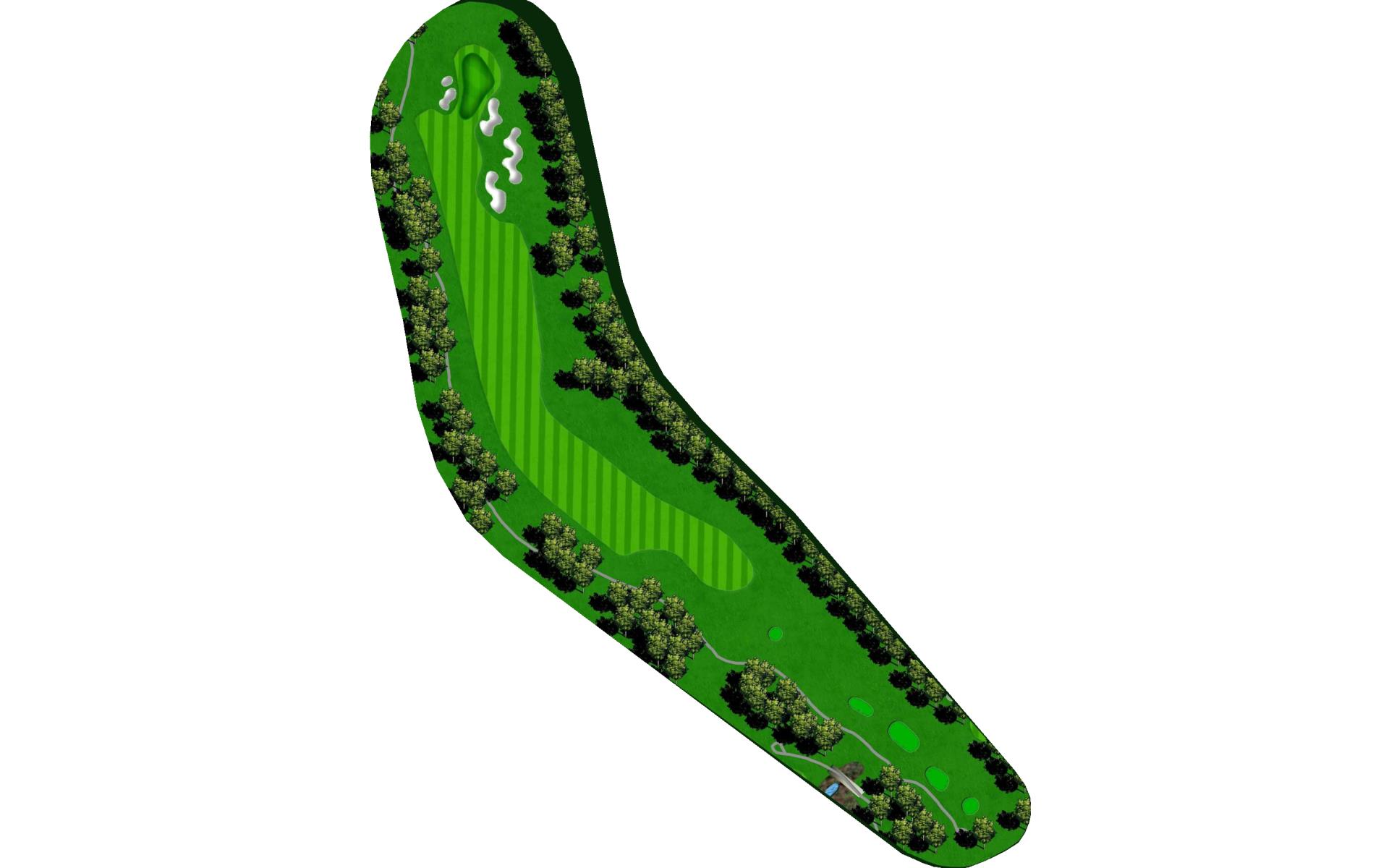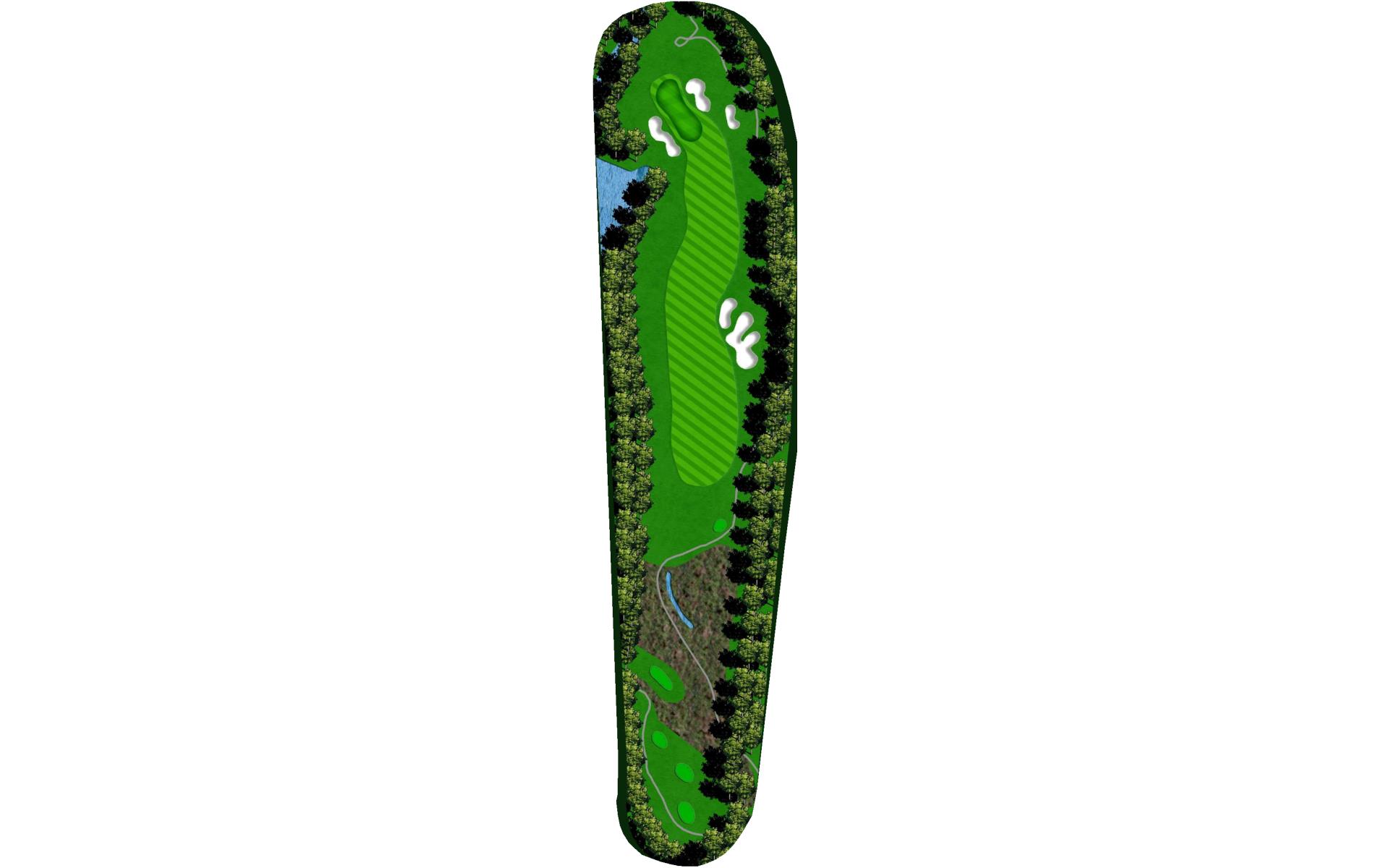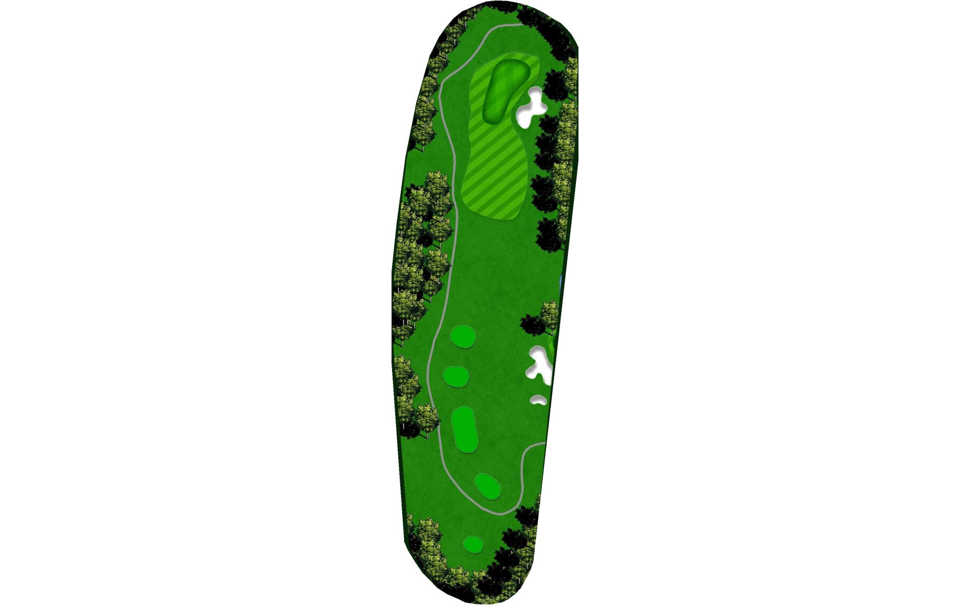 This dog leg requires a long-iron or 3-wood shot to make it to the corner. You don't want to go through the fairway or you will find the creek, to short and trees will block you out from the green. The green is guarded by a creek that flows in front and down the right side of the green.