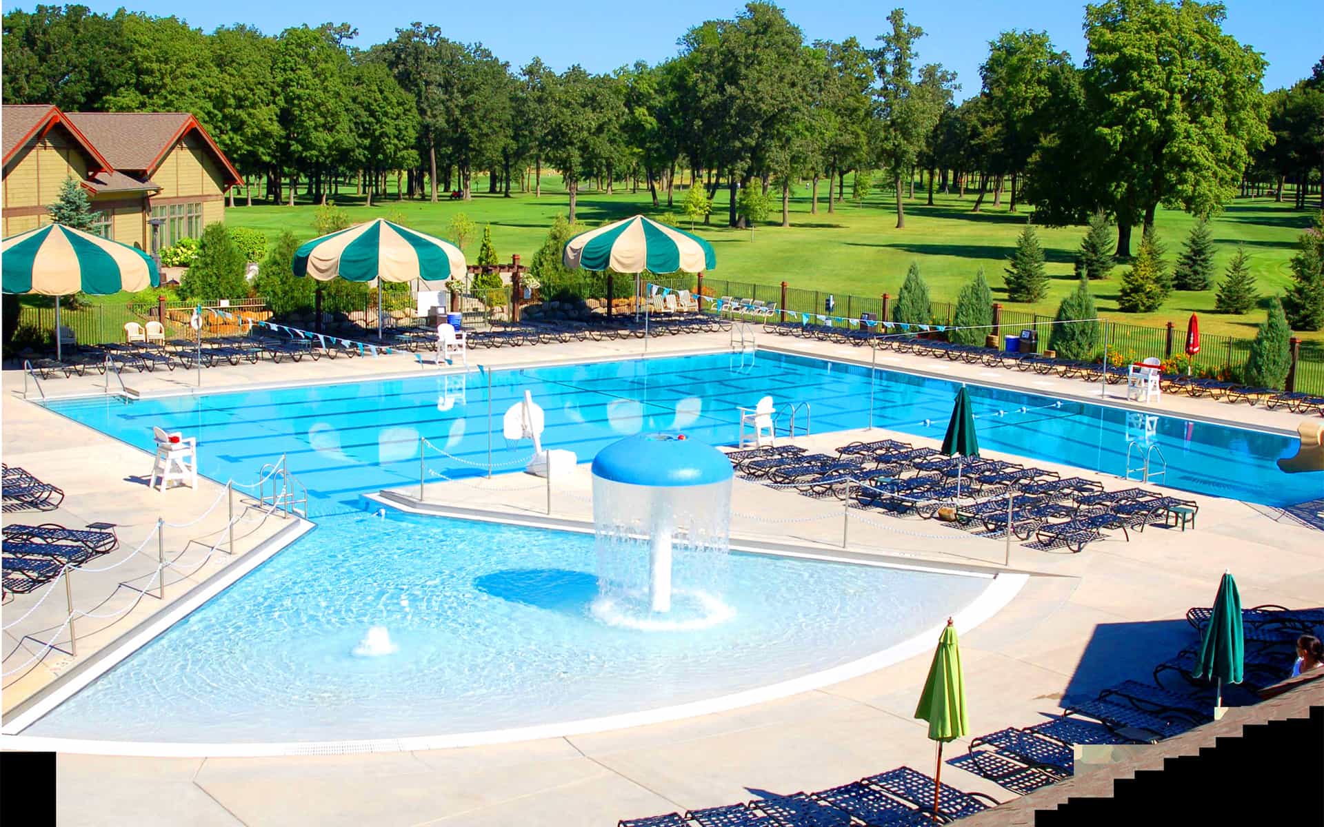 As a Medina member, you can enjoy our beautifully landscaped pool area featuring an oversized pool with a diving board, slide and zero-depth entry with water spouts. Towel services are available and guests are always welcome. Use our Cabana locker rooms to rinse off after enjoying a day in the sun at the pool.