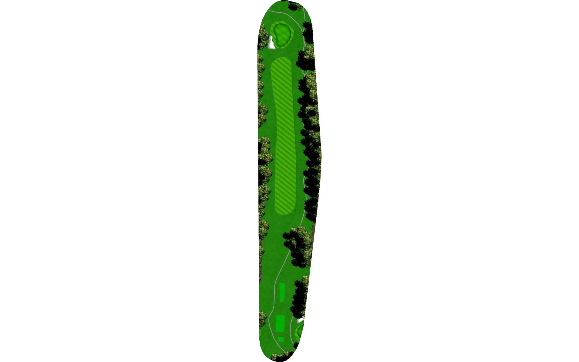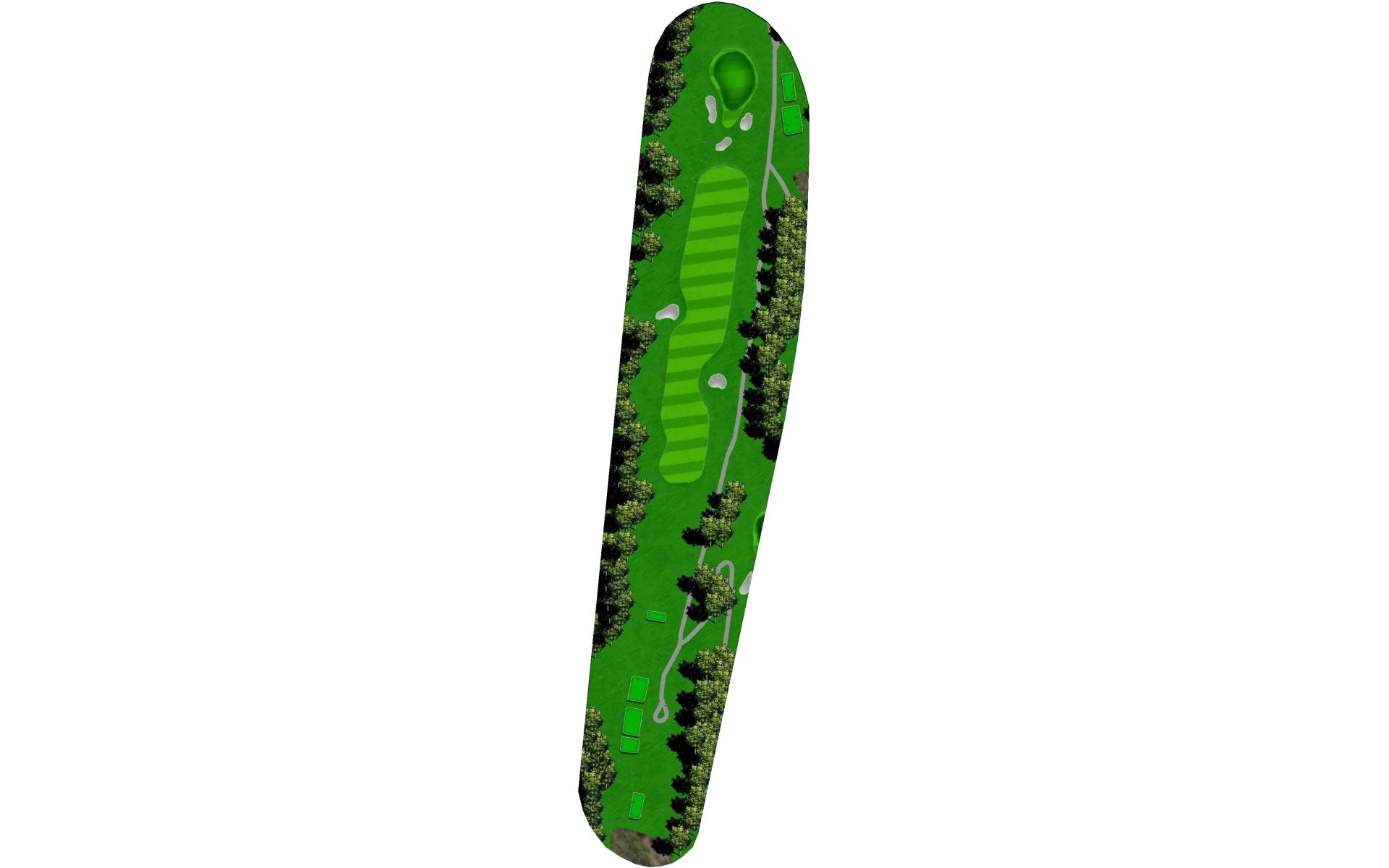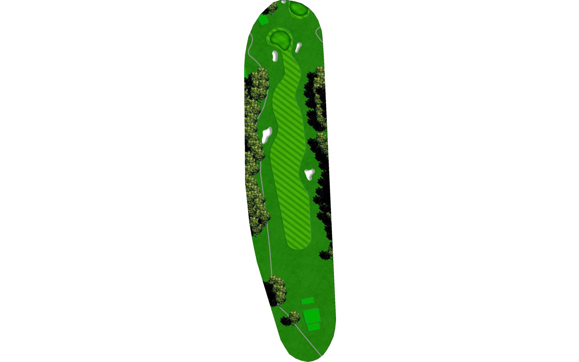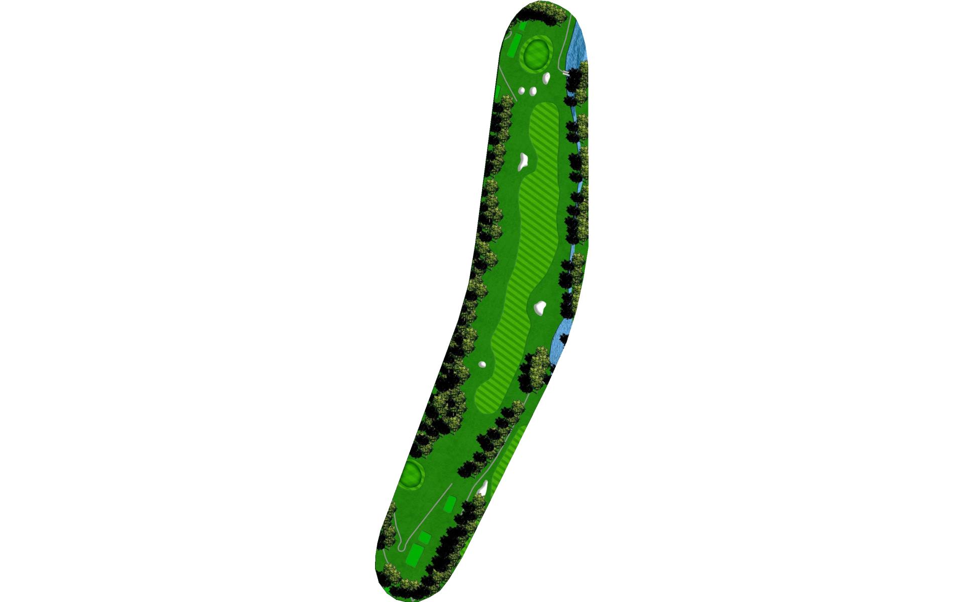 | The longest of our five par 3 holes, this hole is 225 and slightly downhill. The right-to-left green is protected on both sides by bunkers but has an open front to allow players to lay up if they don’t have the distance. Take your par and run if you can. |