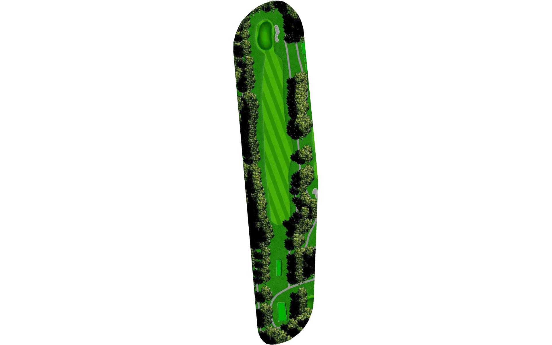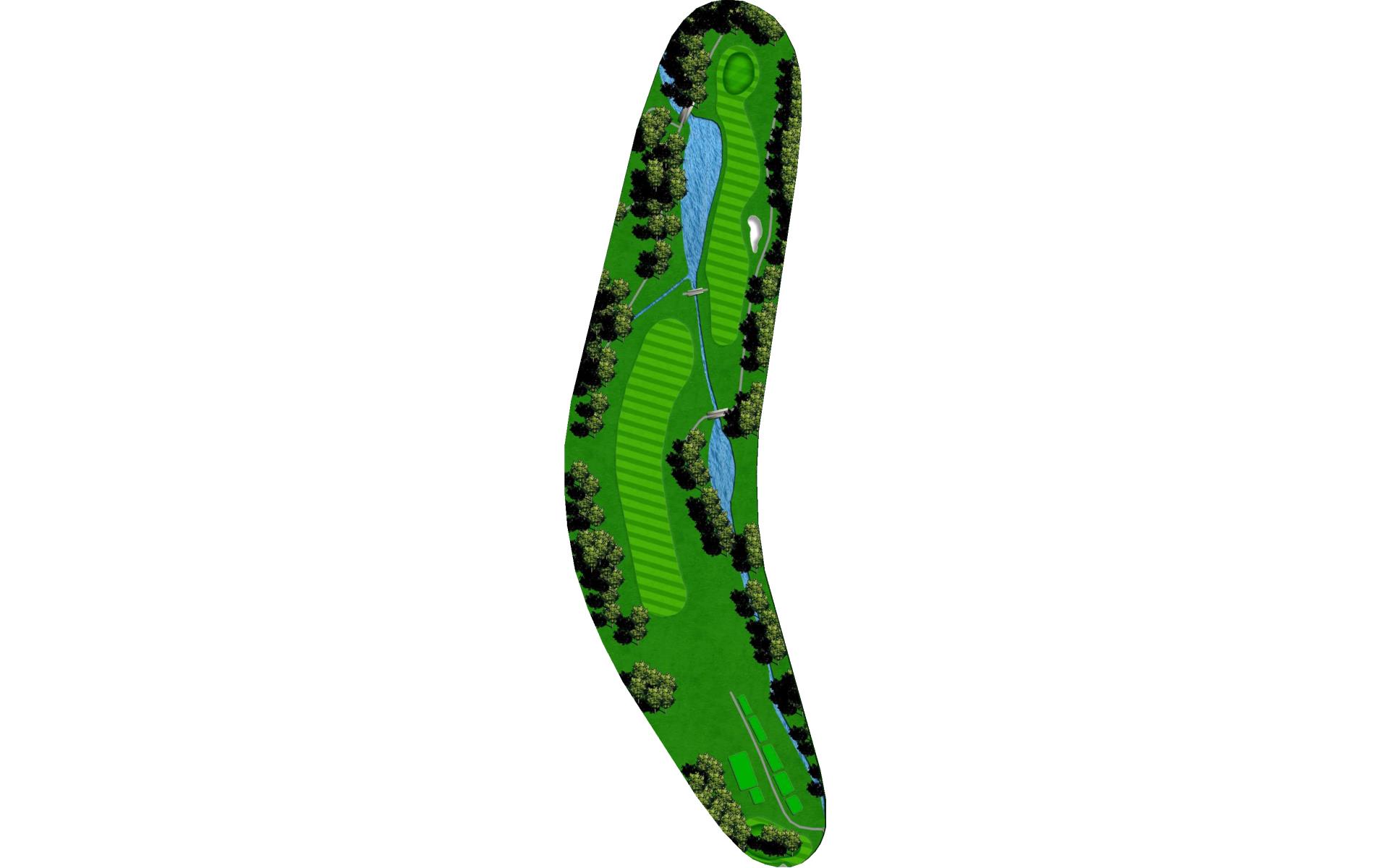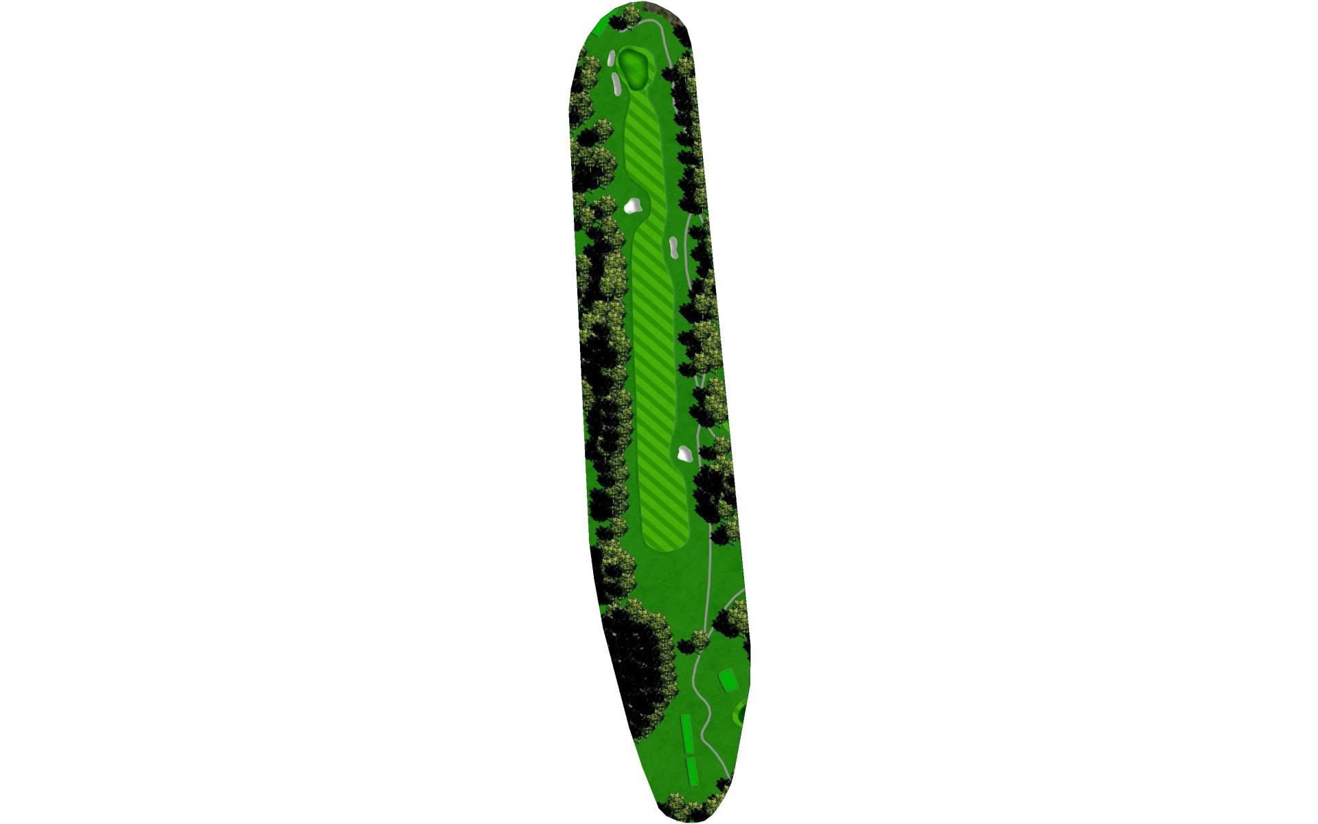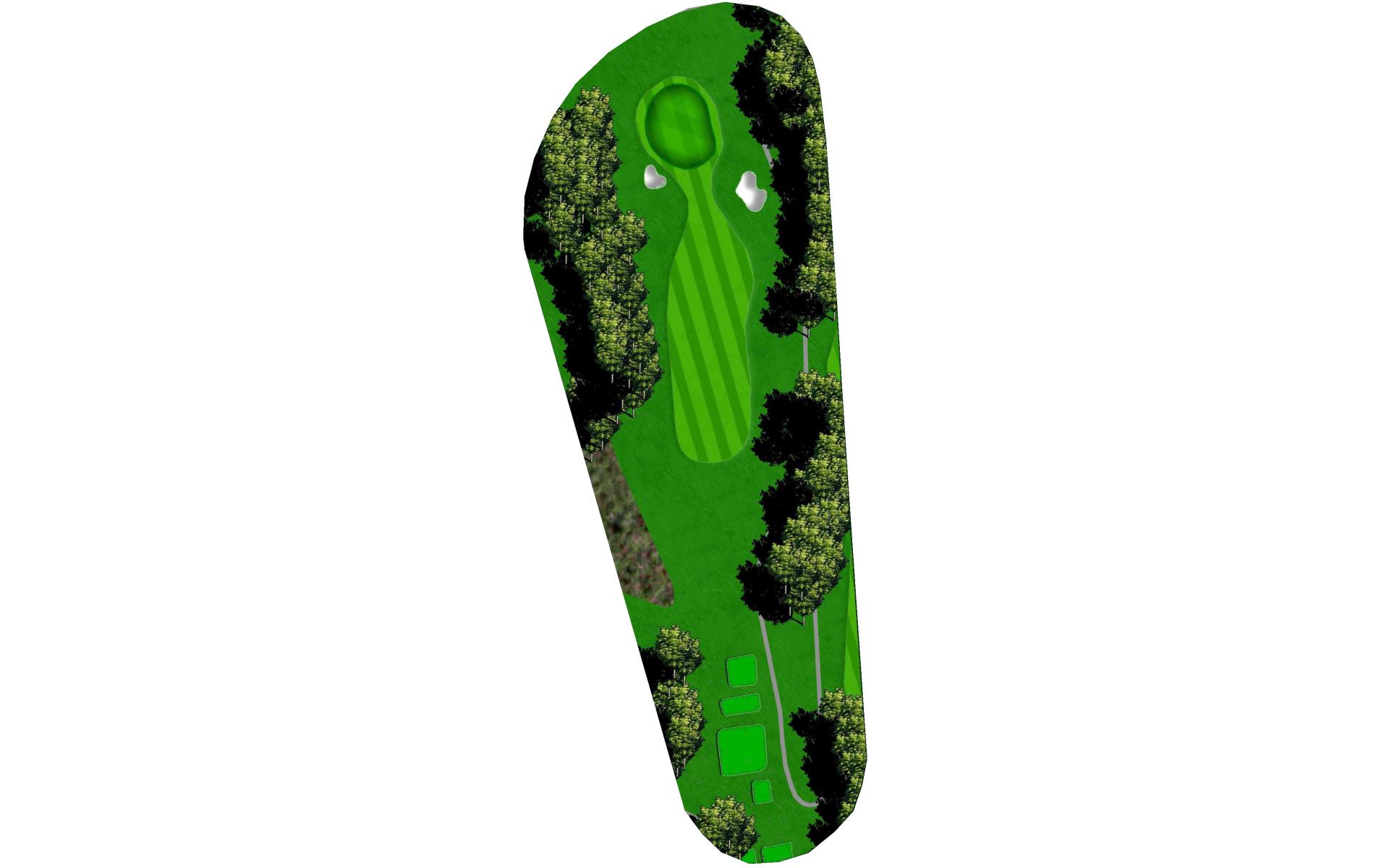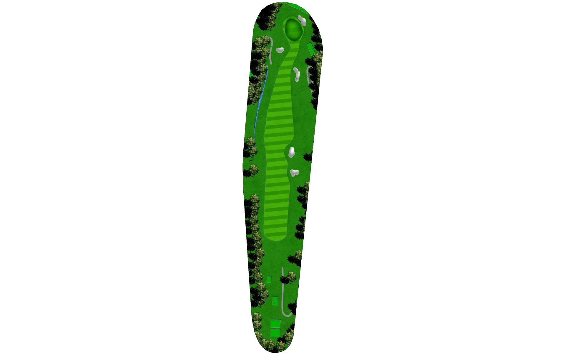 | The longest of our five par 3 holes, this hole is 225 and slightly downhill. The right-to-left green is protected on both sides by bunkers but has an open front to allow players to lay up if they don’t have the distance. Take your par and run if you can. |