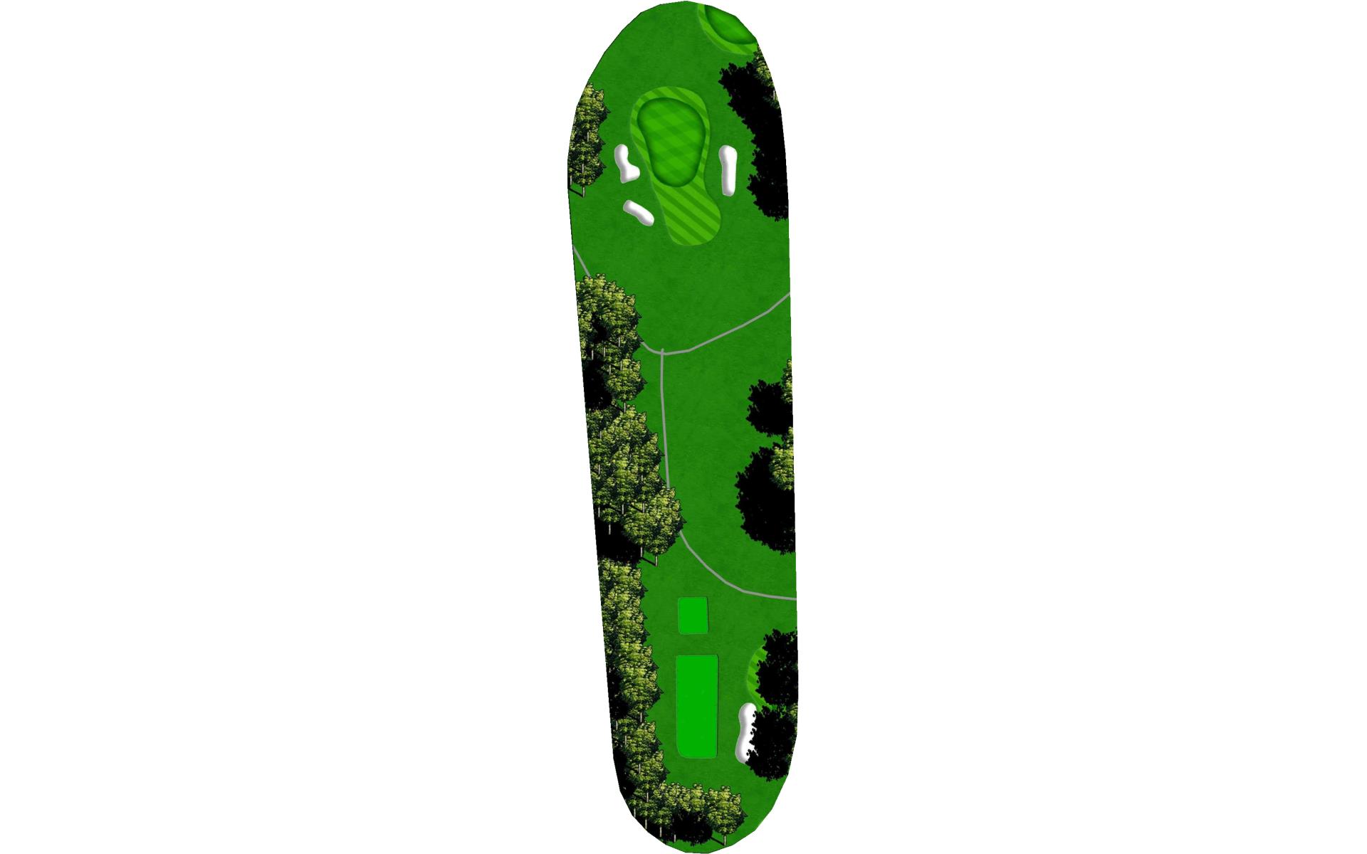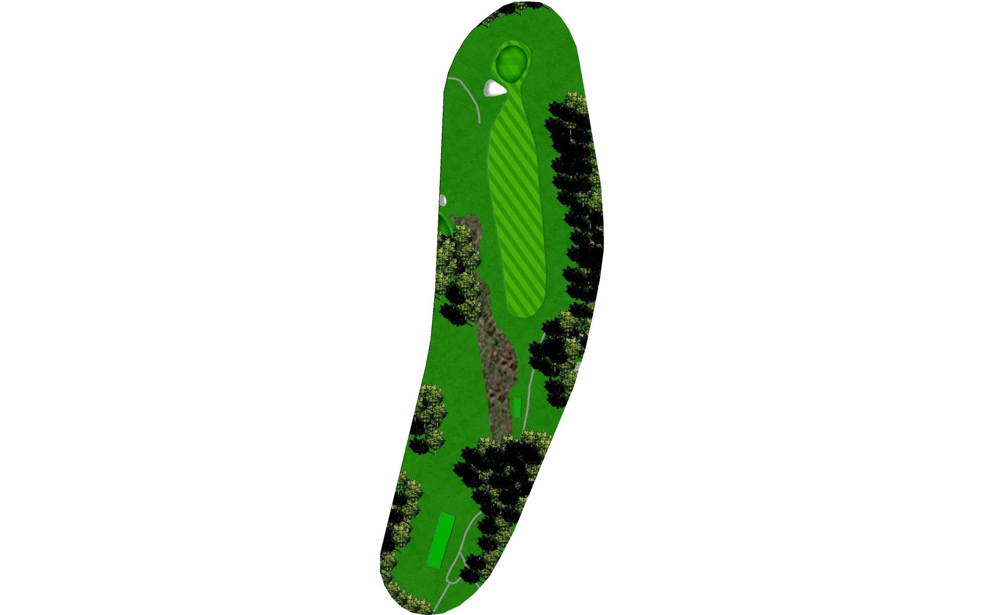 | With one of the widest and most inviting fairways on the course, this hole has a green that sits below fairway height. The average golfer will have a blind 200-yard shot into one of the most difficult greens on the course. With only one green-side bunker, you would think missing the green would not be too penal, but you would be mistaken. If you miss the green right you had better summon all your short game skills. Even that may not be enough to save par. |