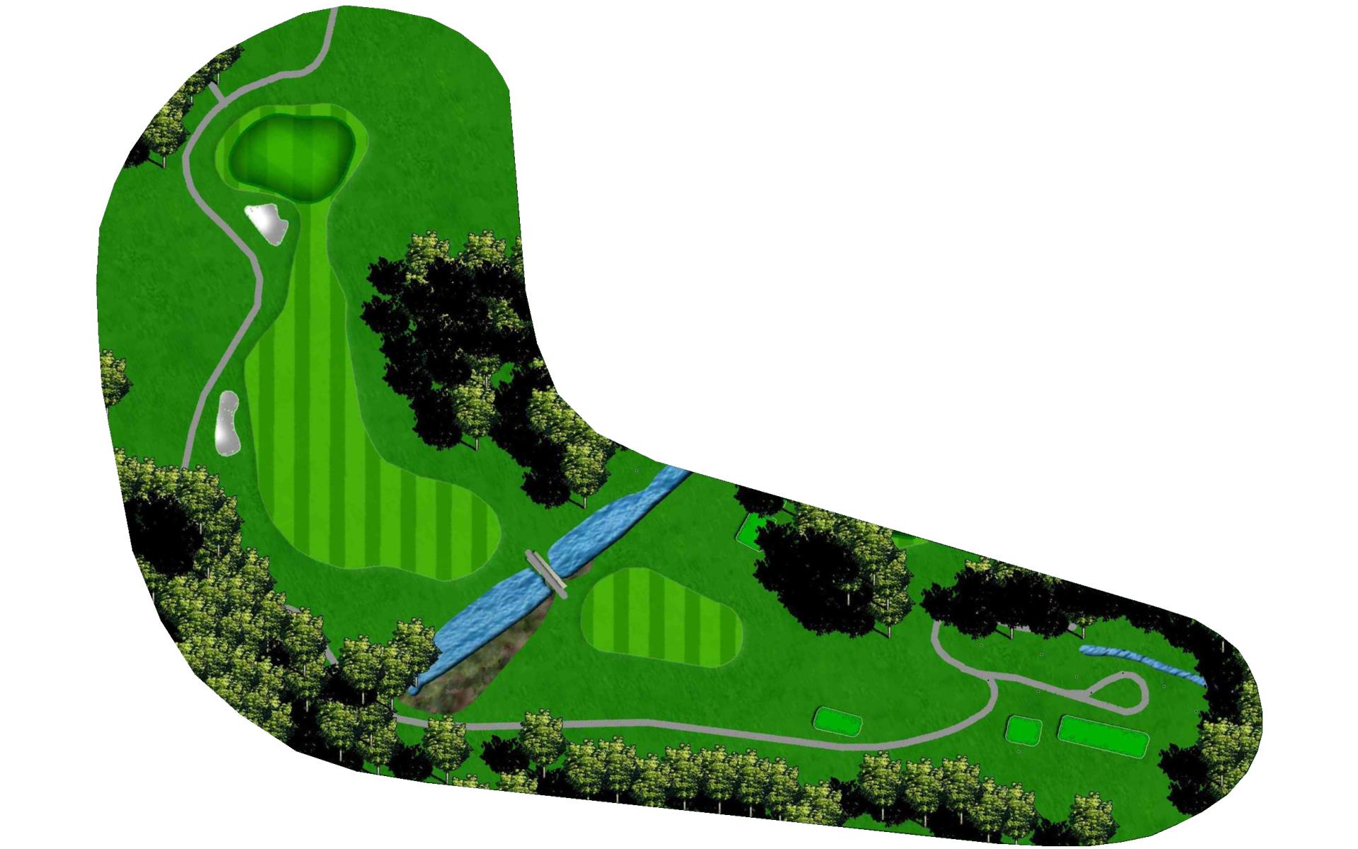 | Precision is the name of the game here. A sharp dogleg right climbs back out of the old iron quarry to the elevated green. The long hitters have no advantage on this hole so long as you can carry the creek 210 yards off the tee. The longer you hit the tee ball the more sloped the fairway will be for your approach. Two well-placed shots can get you to the putting green if you are not too aggressive. If you miss the green to the right, you will find yourself climbing back into the quarry. |