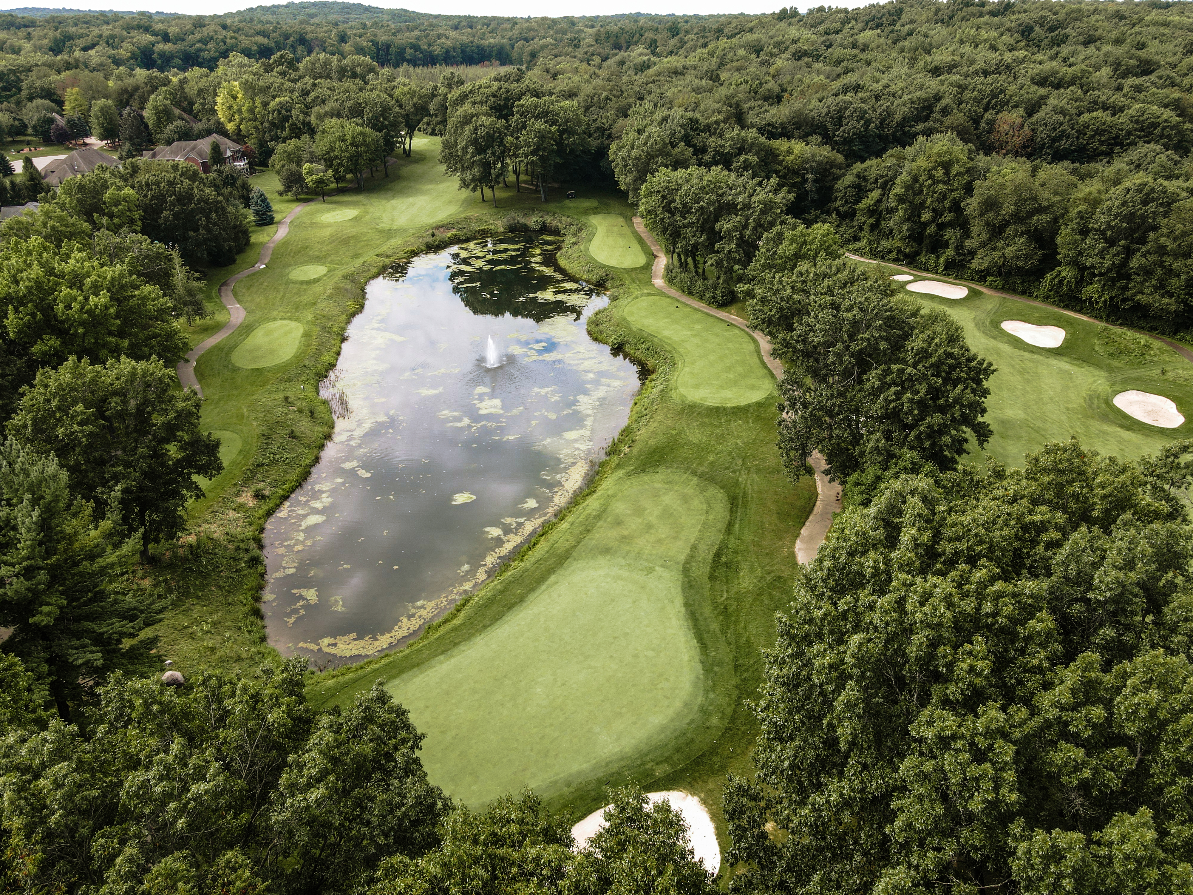 To paraphrase Arthur Hills the “Fun starts here”. Crooked lake guards the entire left side of this hole. The long par 4 requires a lot of attention on the approach. With the large bunker protecting the front right and a sloping green from right to left. It is key to hit the center of the green. This defining finishing hole has determined many outcomes of competitive play.