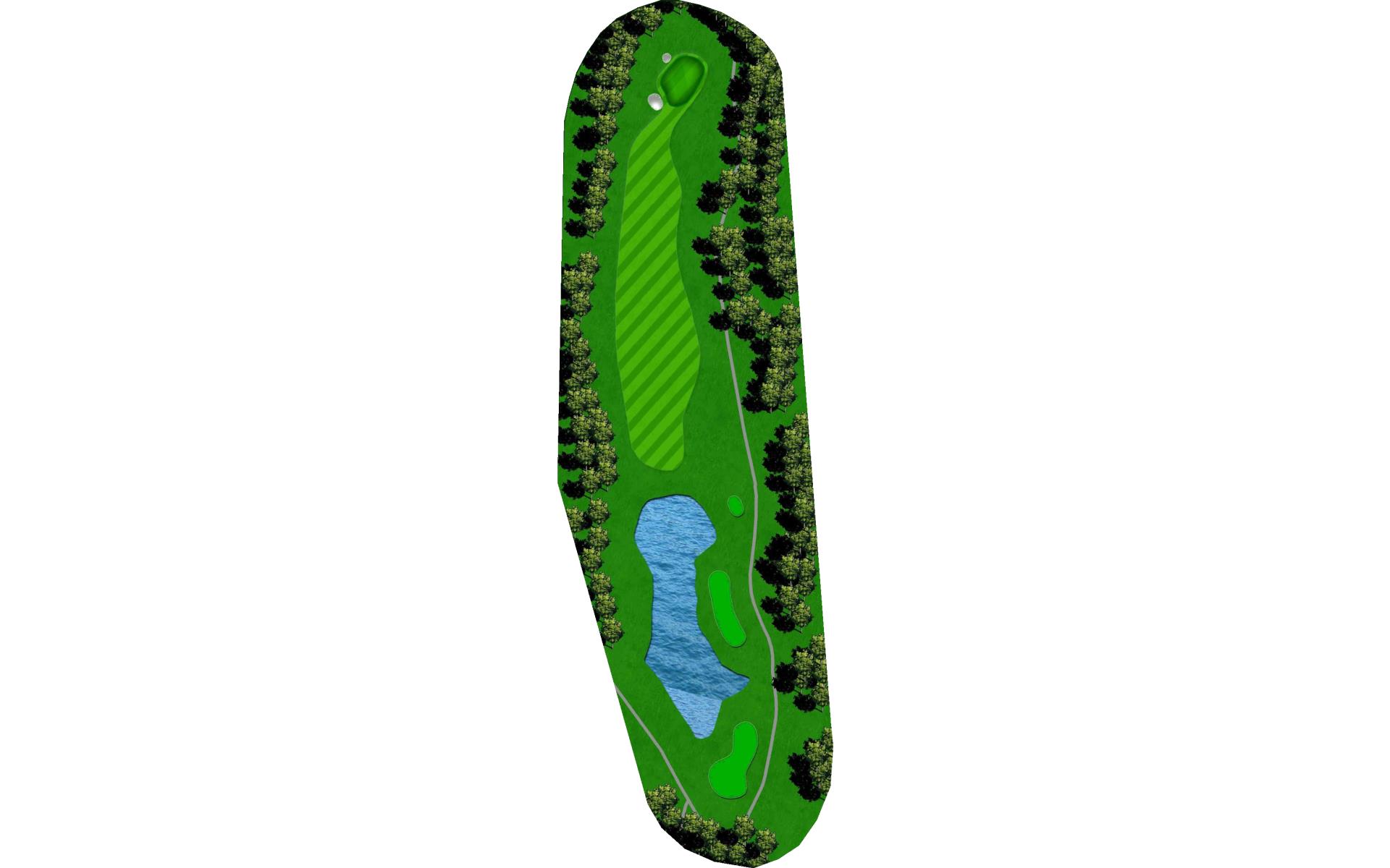 A Shot-makers PAR 5. With a long drive that favors the right side of the fairway, the green is reachable in two shots. An excellent high-risk, high reward approach shot into the green can lead a great score. The less riskier Lay-up second shot will leave you with a wedge or short iron third shot into green.