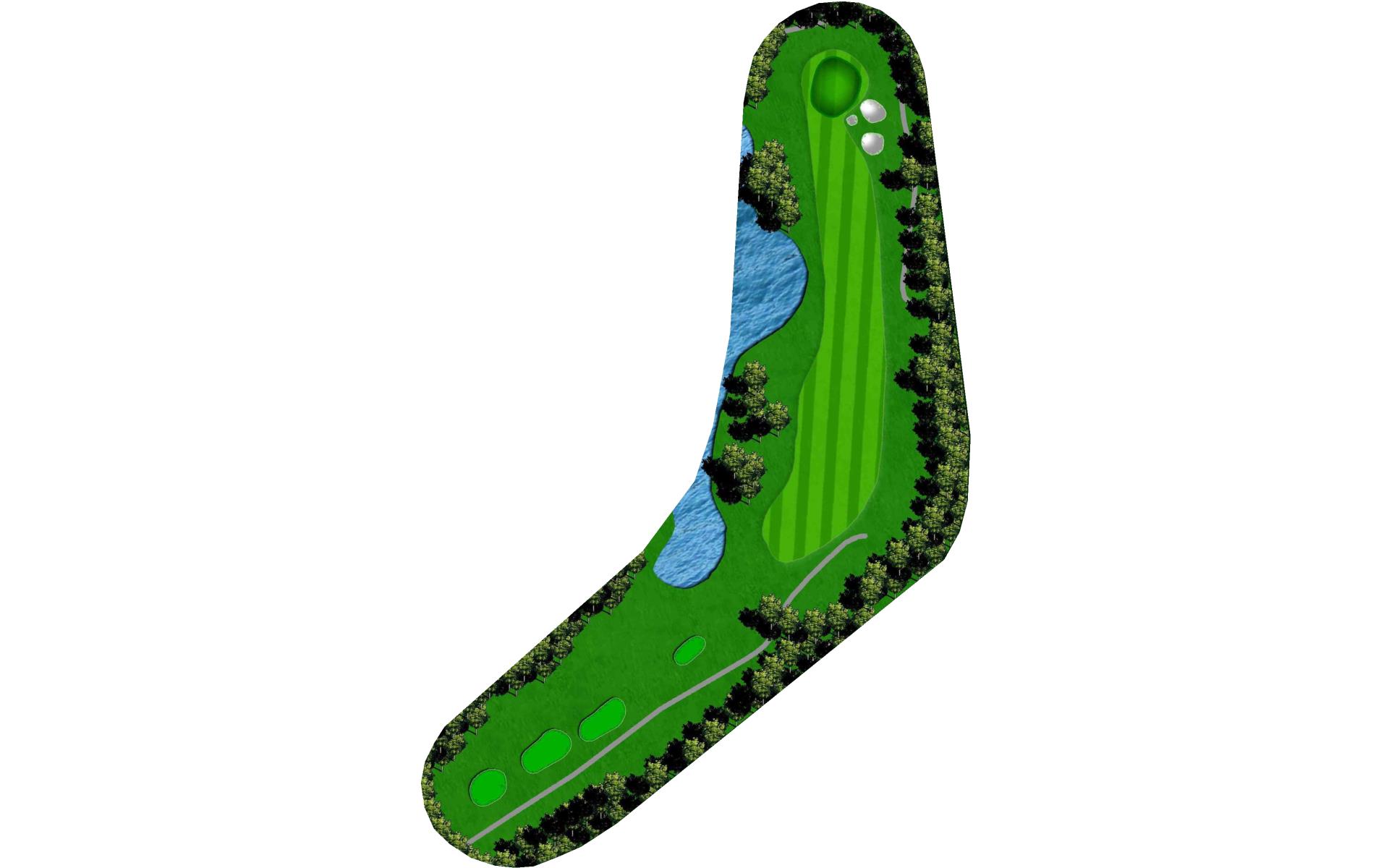 Shorter Dog Leg Right PAR 4. Possible to drive green with big tee shot from the forward tee box. Longer hitters can shorten this hole by hitting their drive down the right side and cutting the corner with a left to right ball flight. For the average player, a tee shot that favors the middle of the fairway will give a good angle into the green for the approach shot.