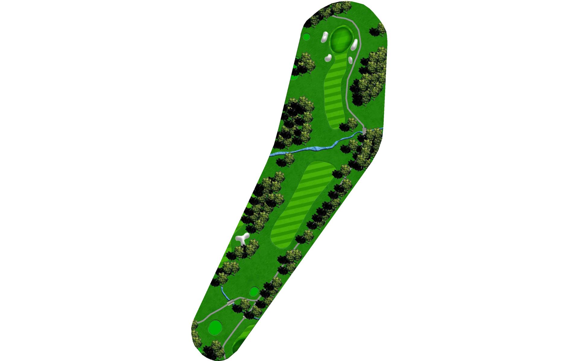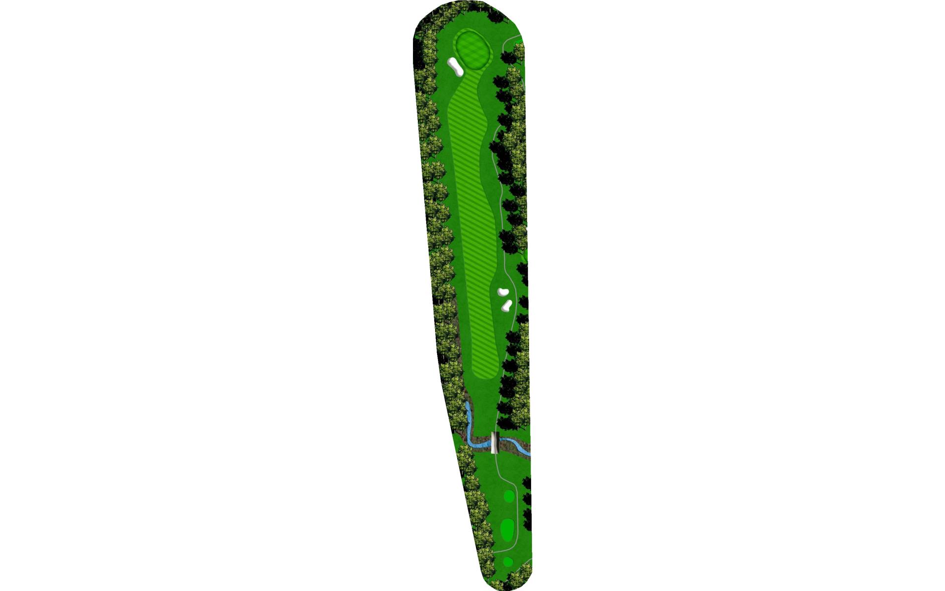 Difficult tee shot with water on right and crossing the fairway. Mostly a three-shot hole. Difficult approach shot to a narrow green that is slightly elevated.
