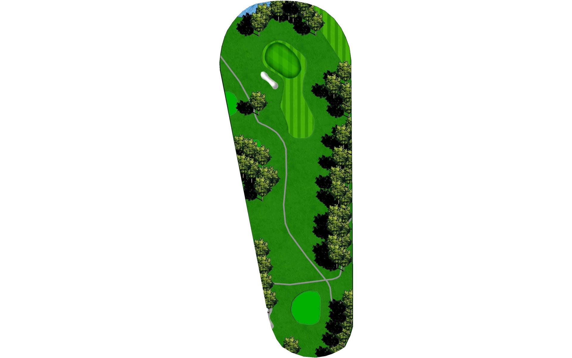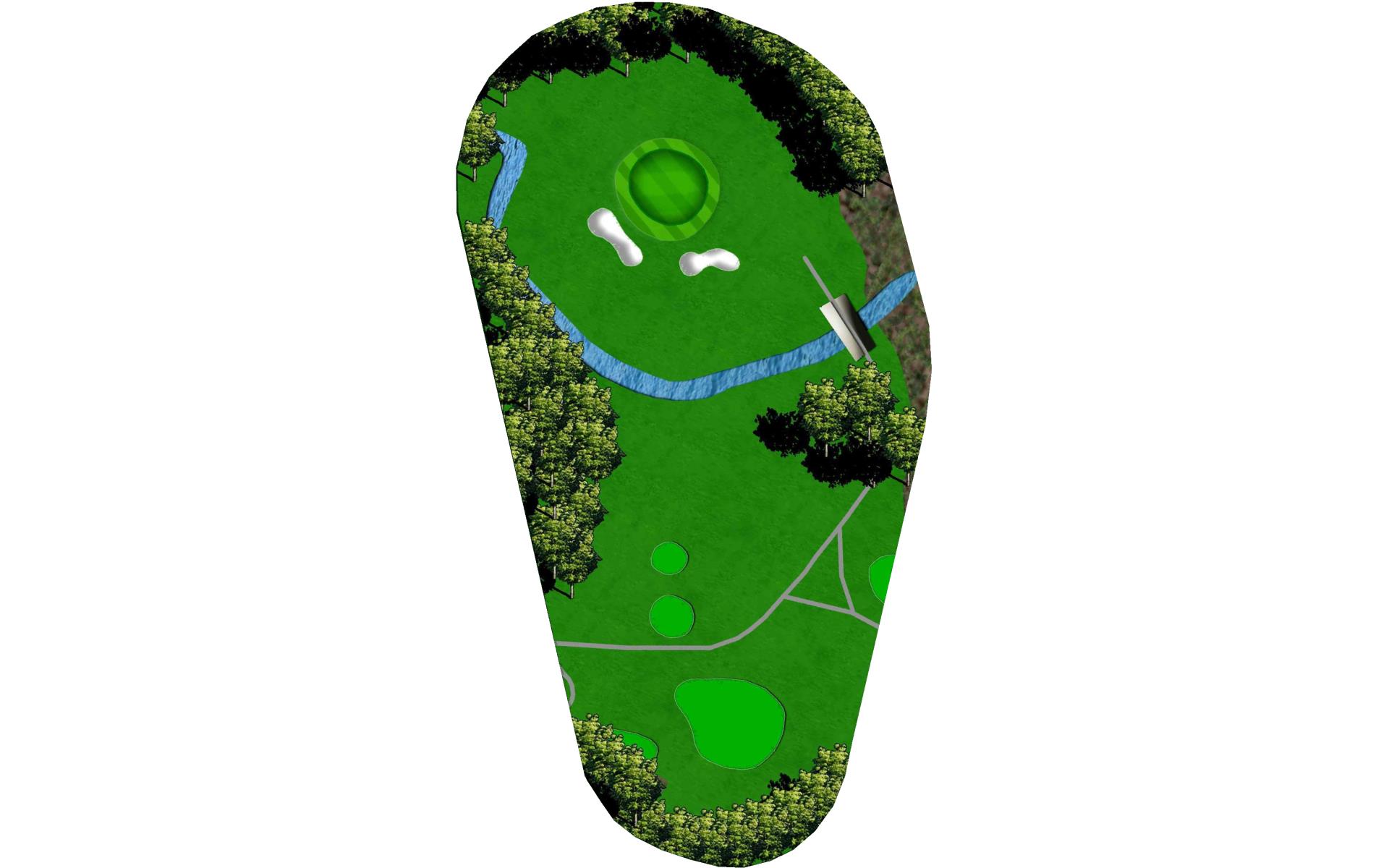 Fun downhill par 3 with a small green. Play for the middle of the green to have a makeable birdie putt.