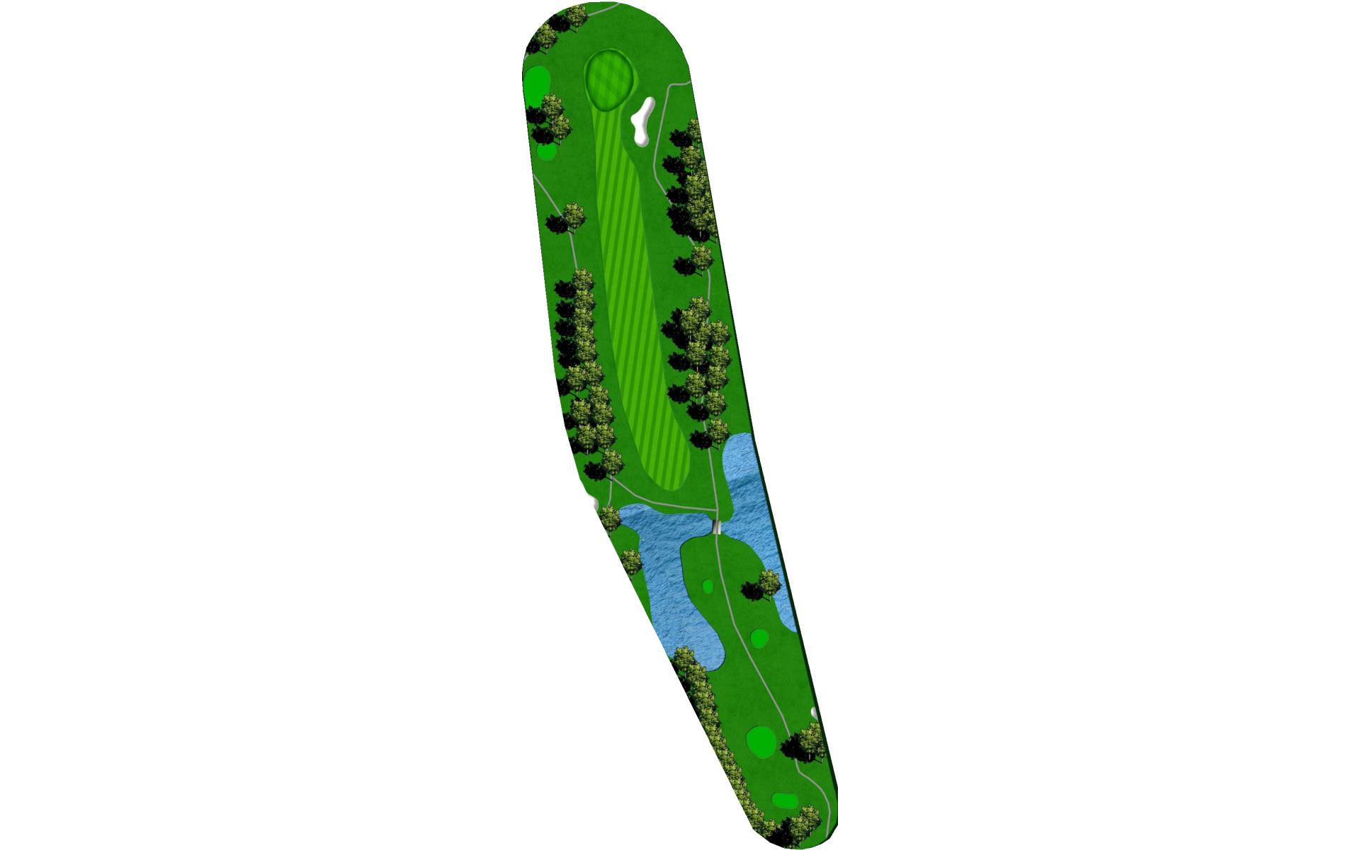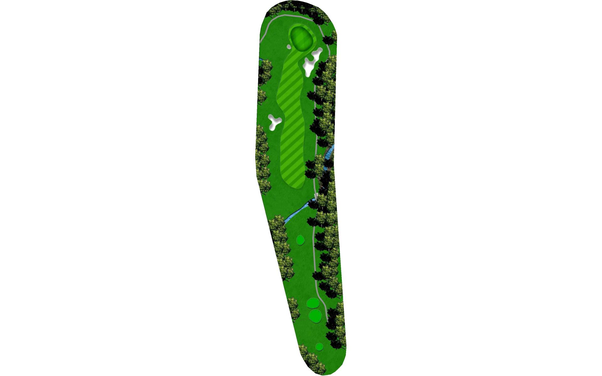 Difficult short hole that features a hazard down the left side and a challenging sloped back to front green. Stay below the hole.