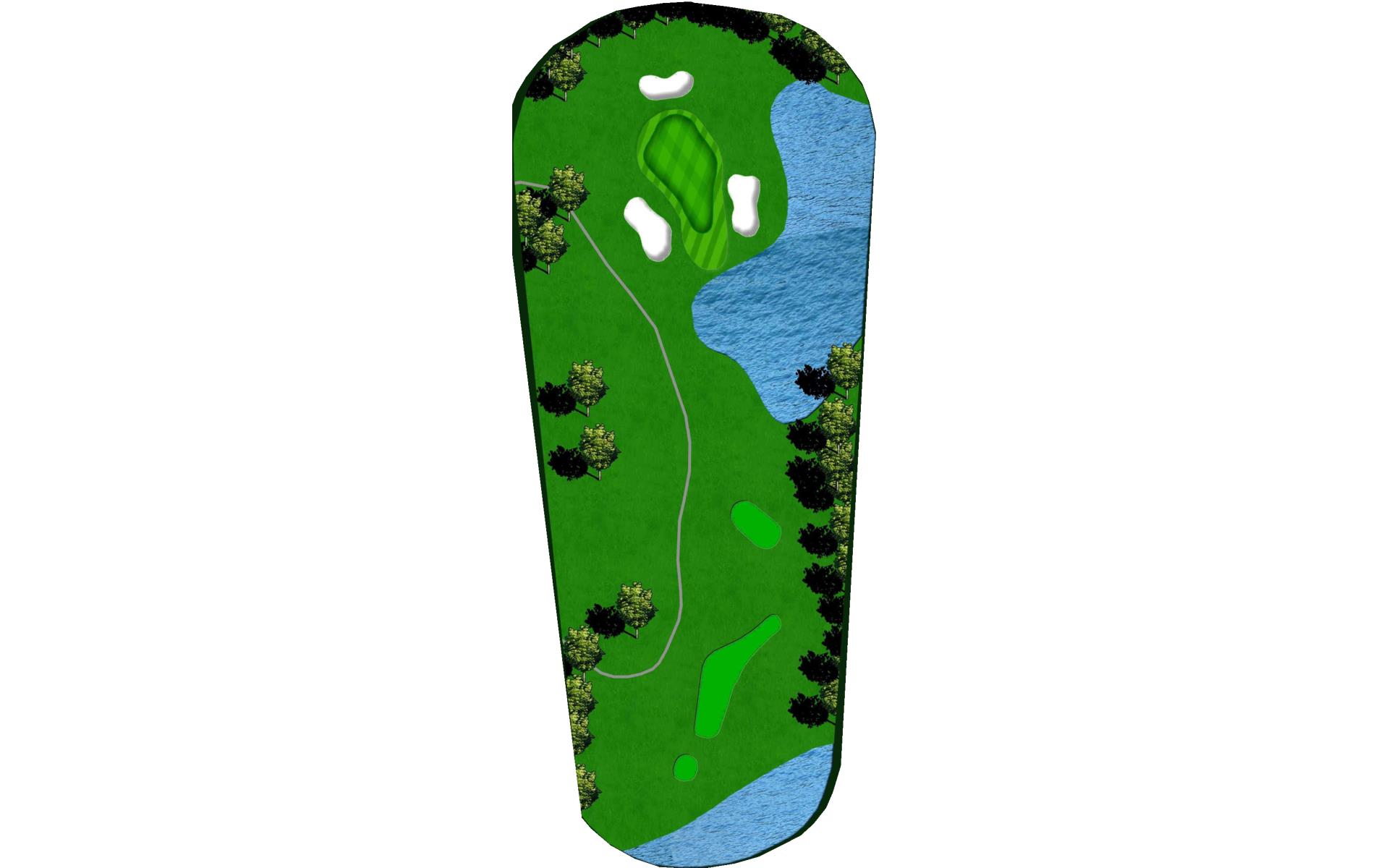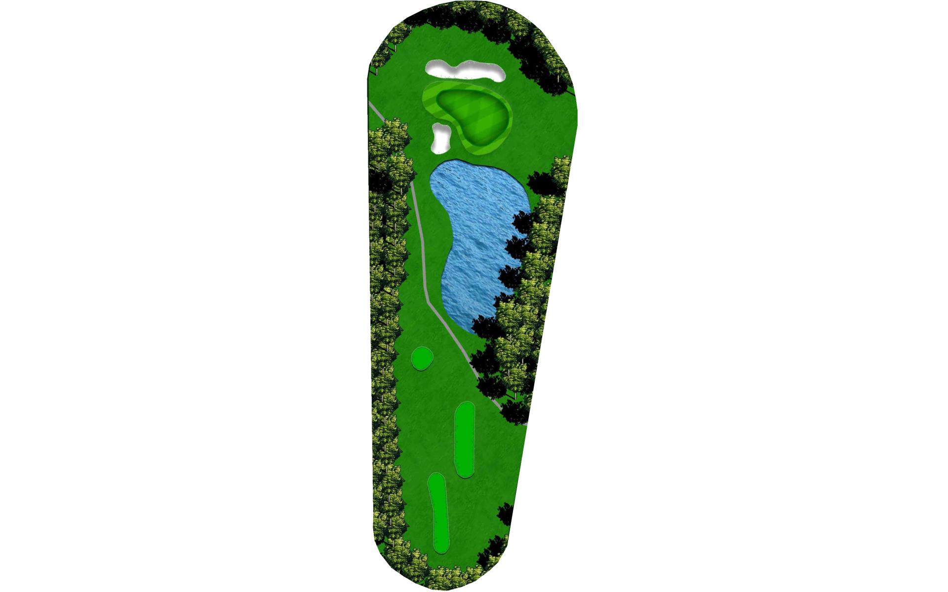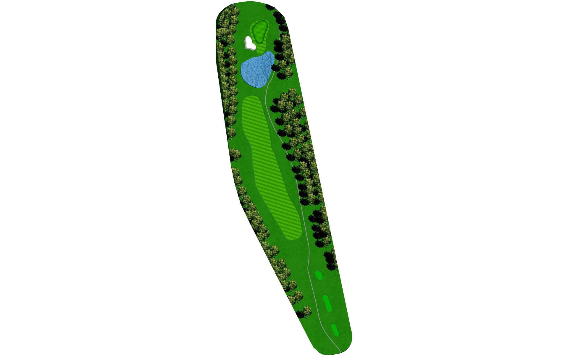Par 4 with a slight dogleg right with a small pond that protects a green that slopes heavily back to front, making the water even more dangerous.