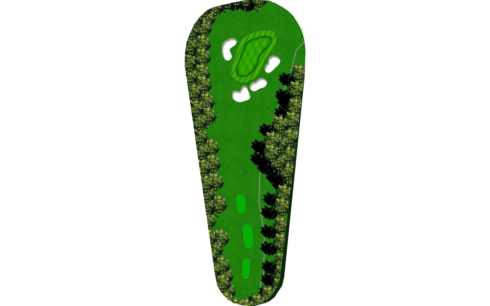 Straight par 4 with tree protecting the left side of the fairway that could cut off access to the green.