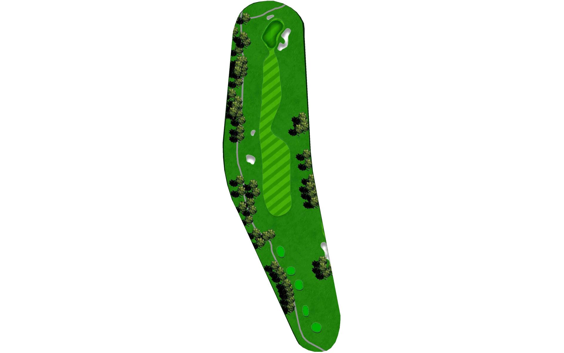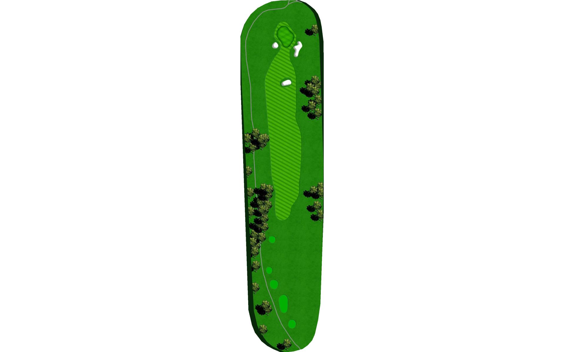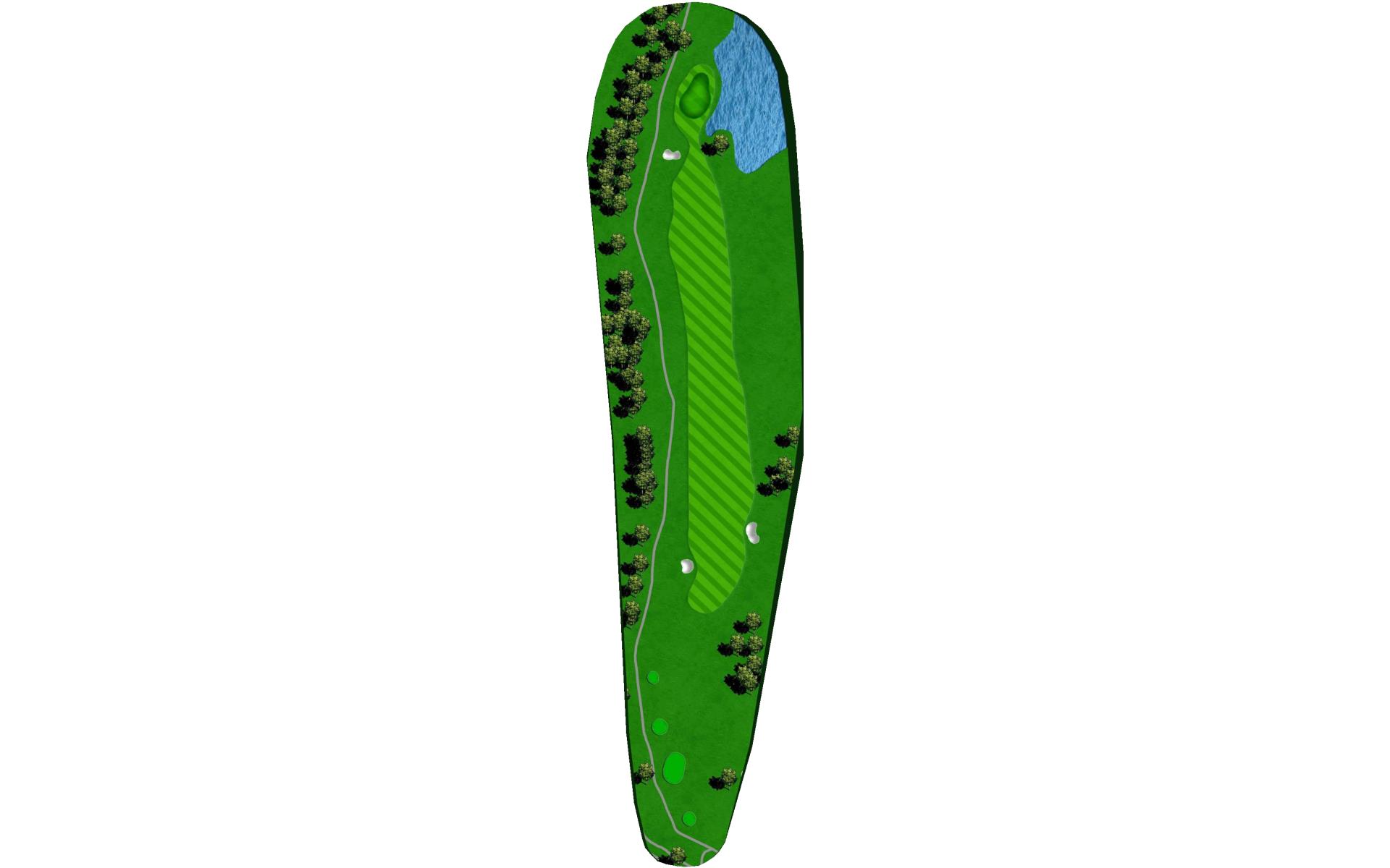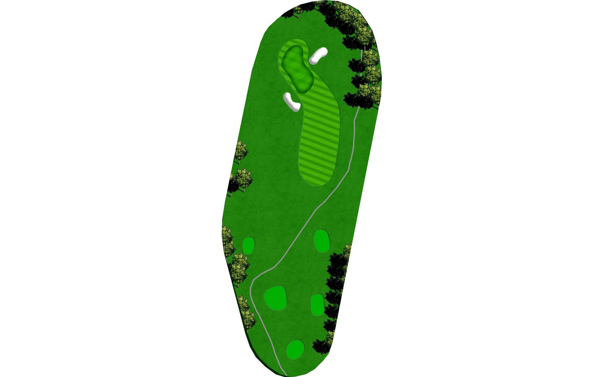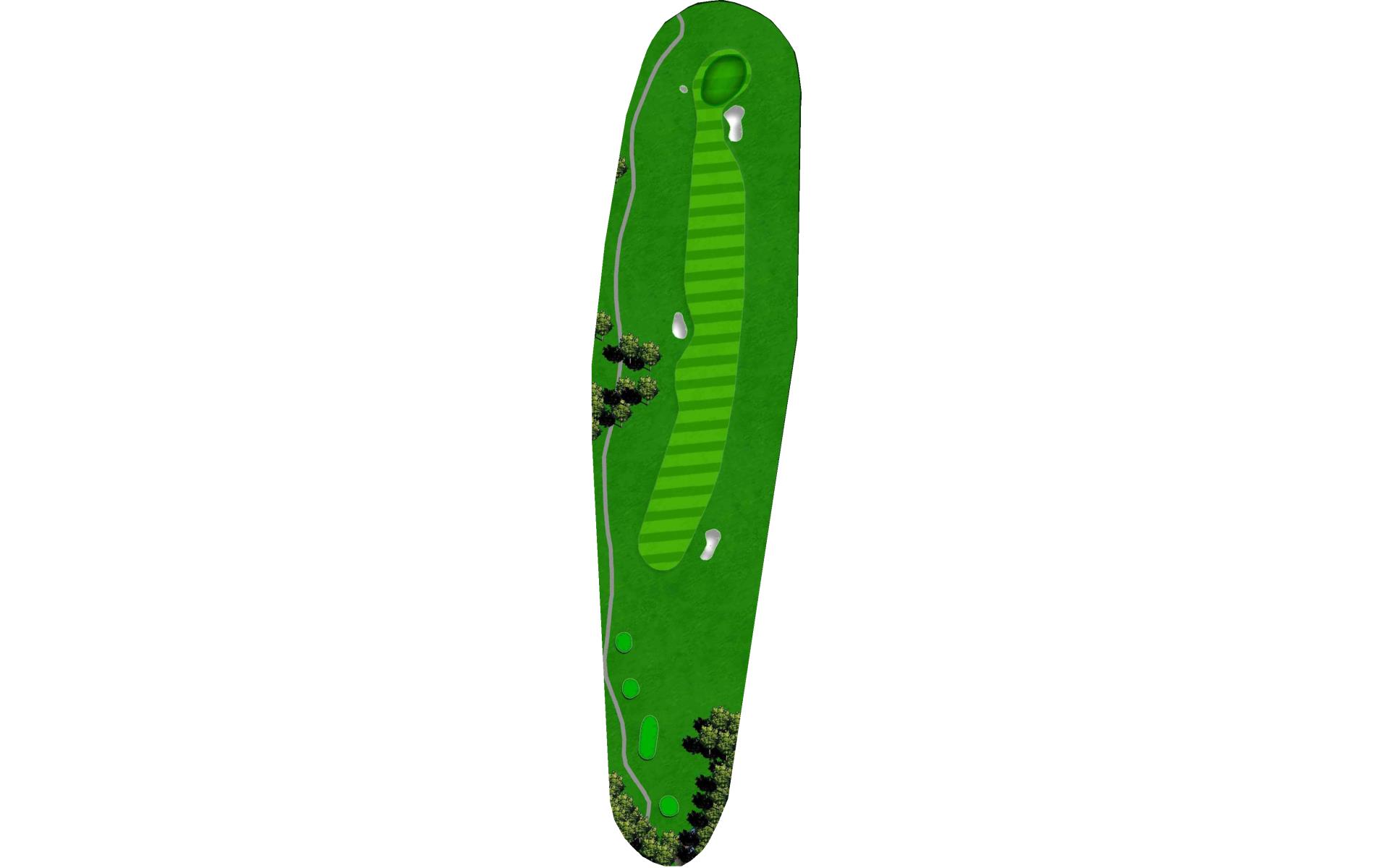 Can you turn it over? A slight draw is the play off the tee leaving you with a shot to a large green. Pick your club wisely on your second shot. Front to Back pin could be a 3 club difference.