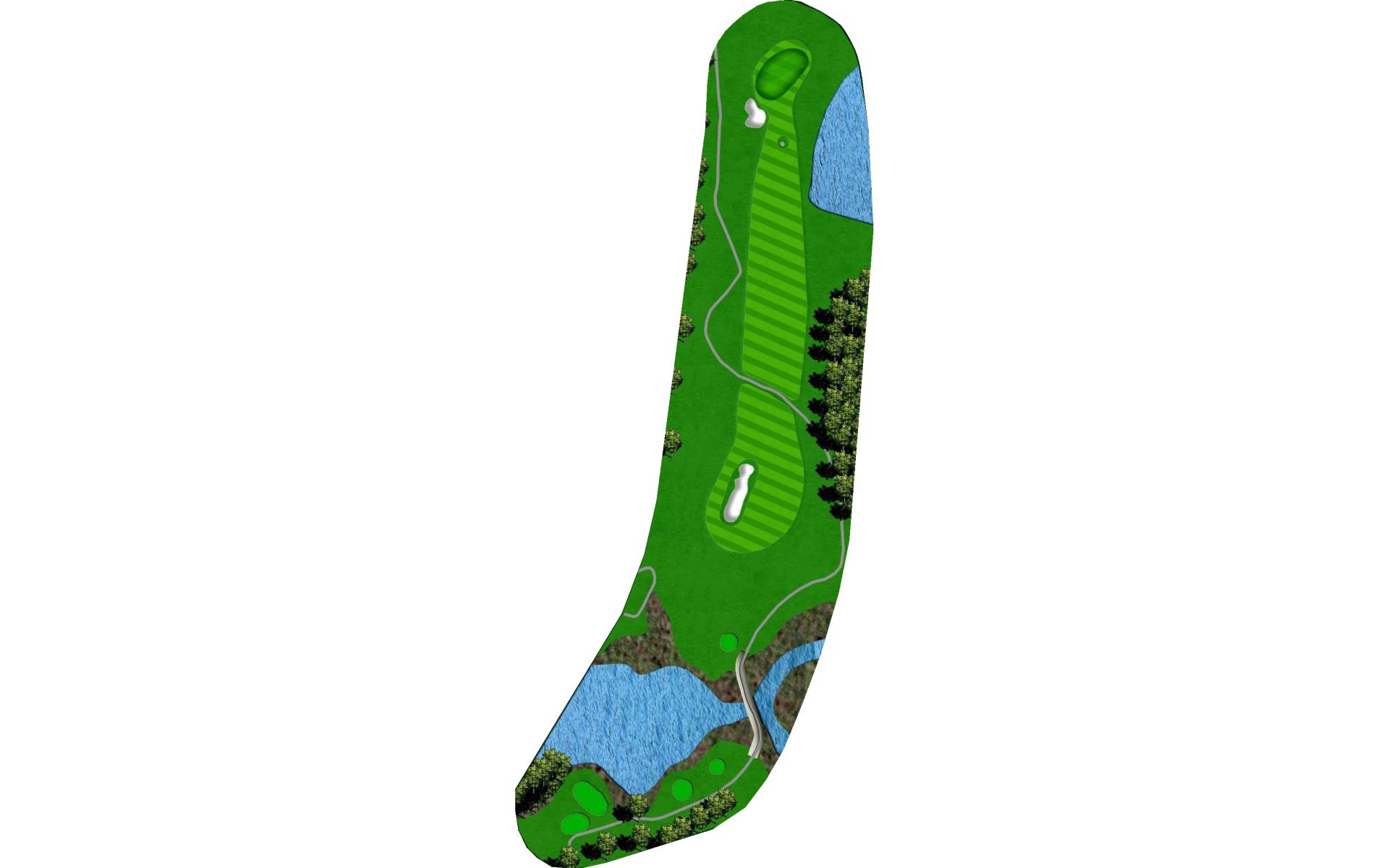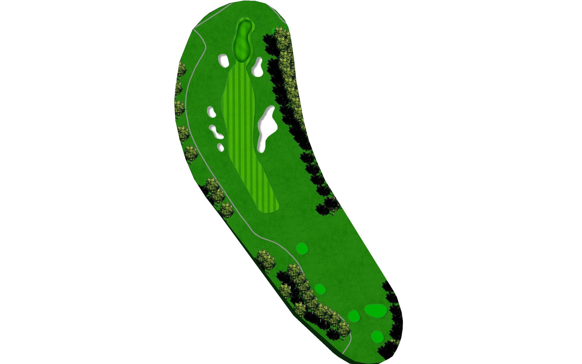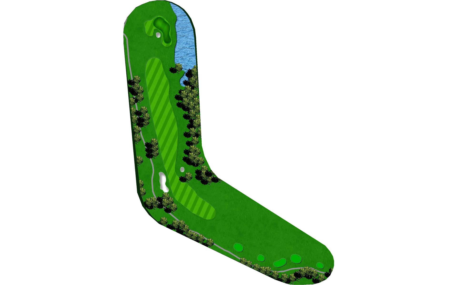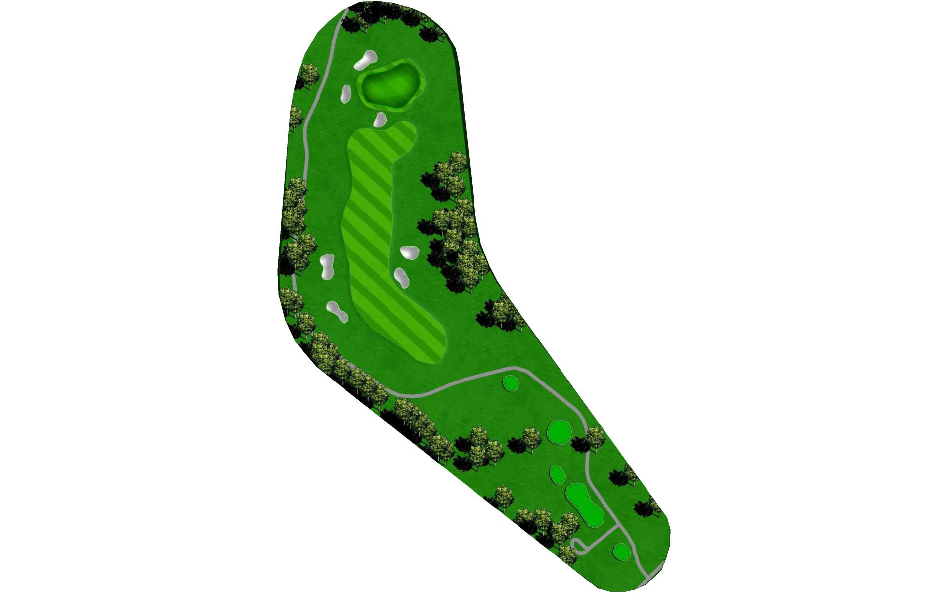 Can you turn it over? A slight draw is the play off the tee leaving you with a shot to a large green. Pick your club wisely on your second shot. Front to Back pin could be a 3 club difference.