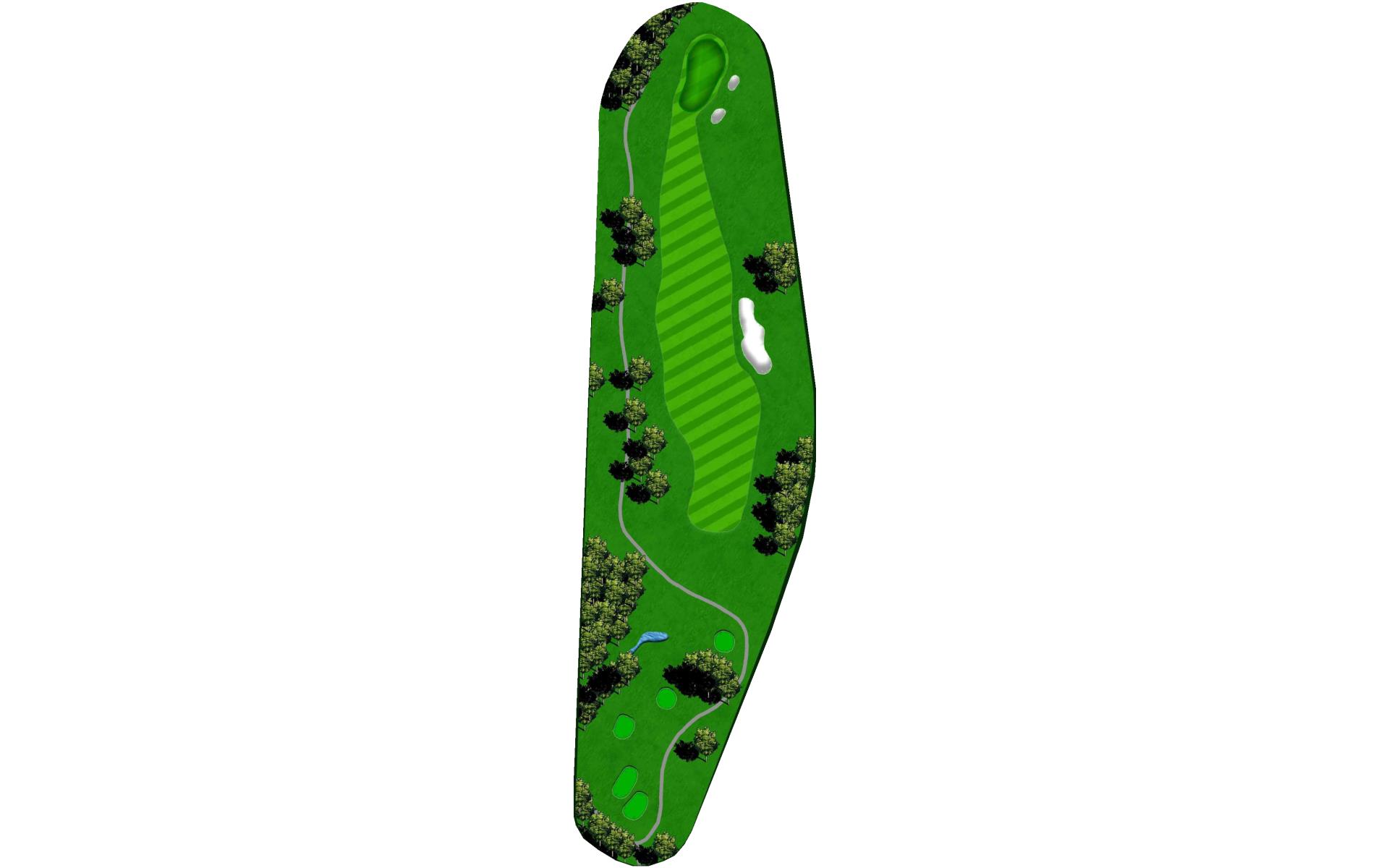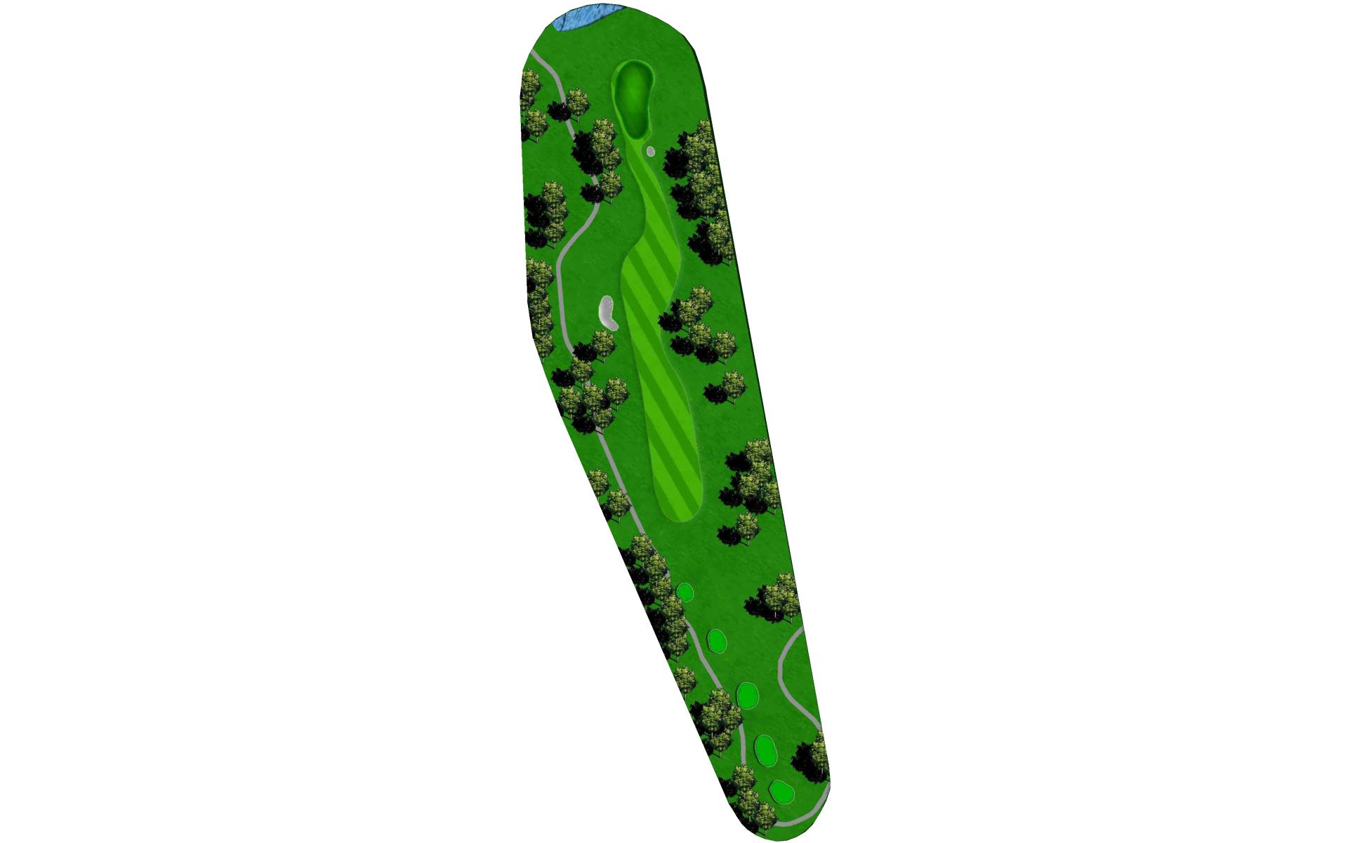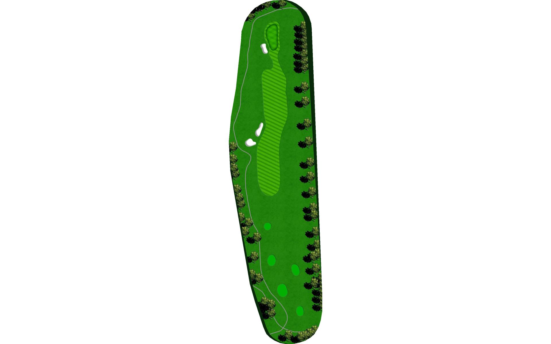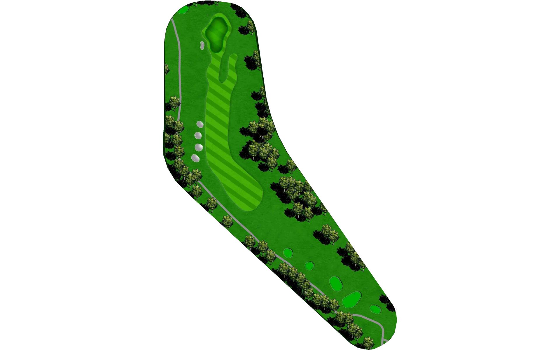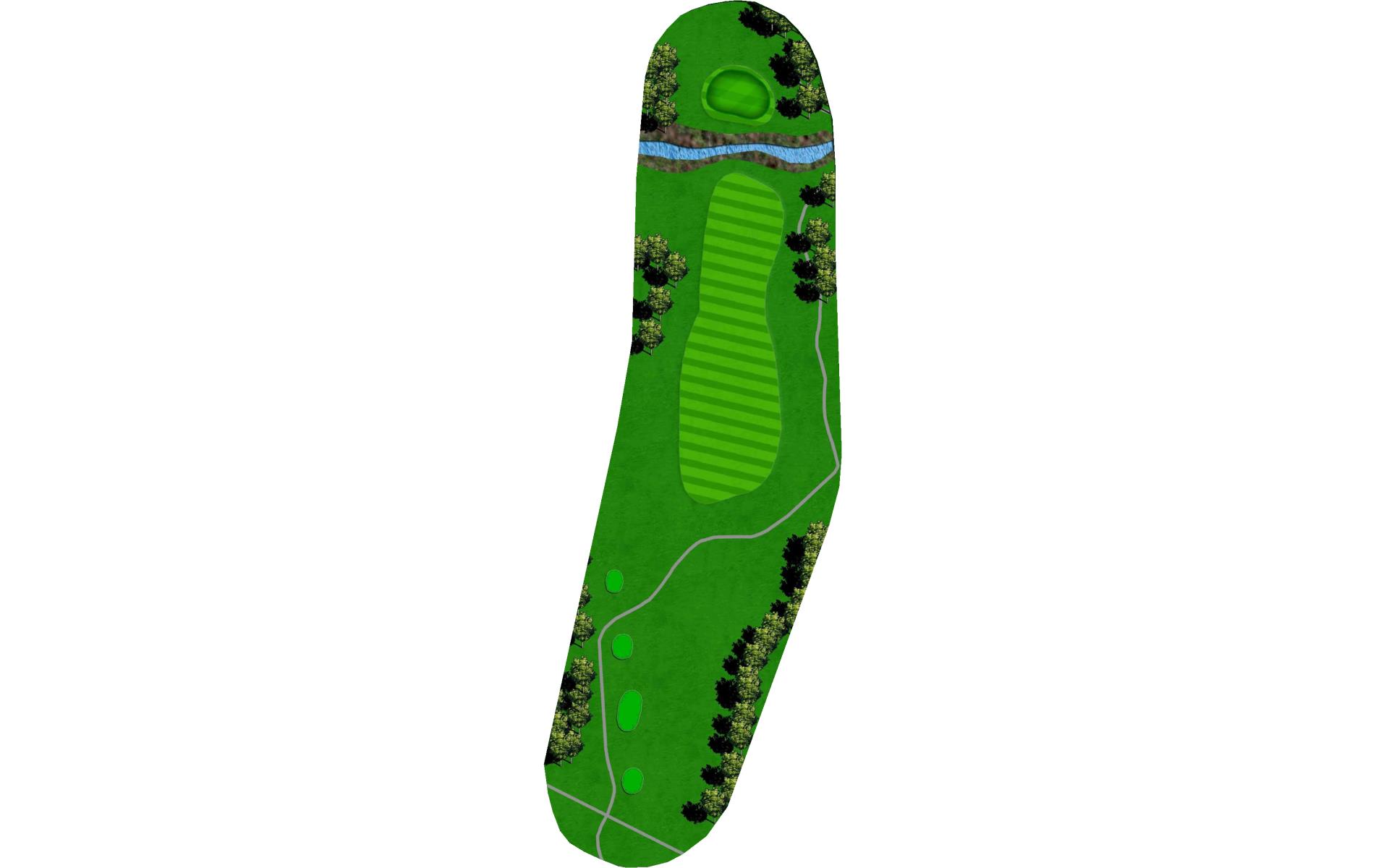 Can you turn it over? A slight draw is the play off the tee leaving you with a shot to a large green. Pick your club wisely on your second shot. Front to Back pin could be a 3 club difference.