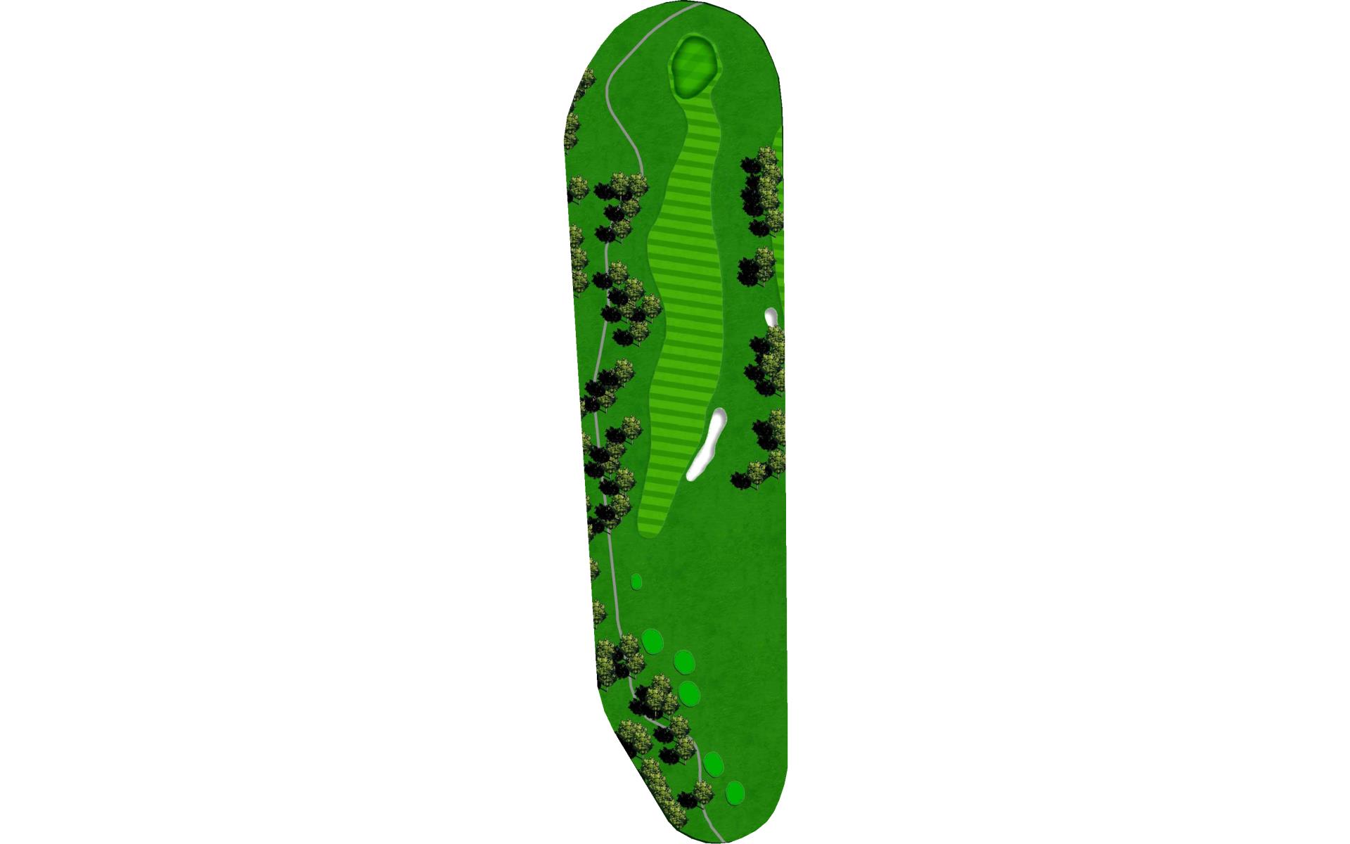 Favor the right side on this straight away Par 4. Bunkers on the left side of the fairway and green are waiting for errant shots.
