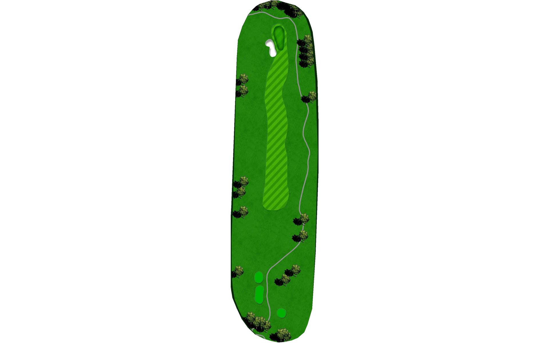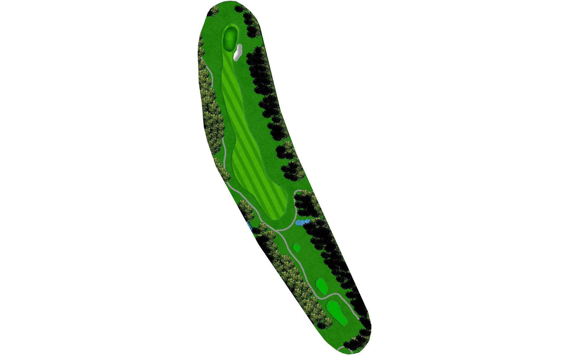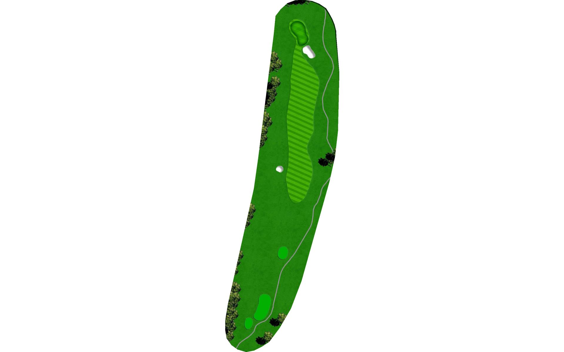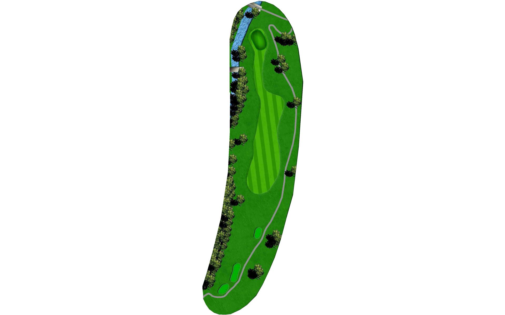 A medium length par 4 that dog legs slightly left. Tee shot should favor the right side of the fairway. A strong tee shot with some draw shape is ideal. The large tree on the left side of the hole will knock any tee shot too far left straight down into the rough. Favor the right side of the green with your approach shot. Any shot that lands left of the center of the green will release left quickly toward the creek. First bounce is typically firm, so play for some release.