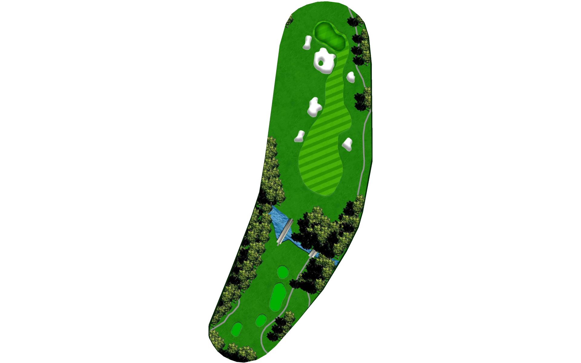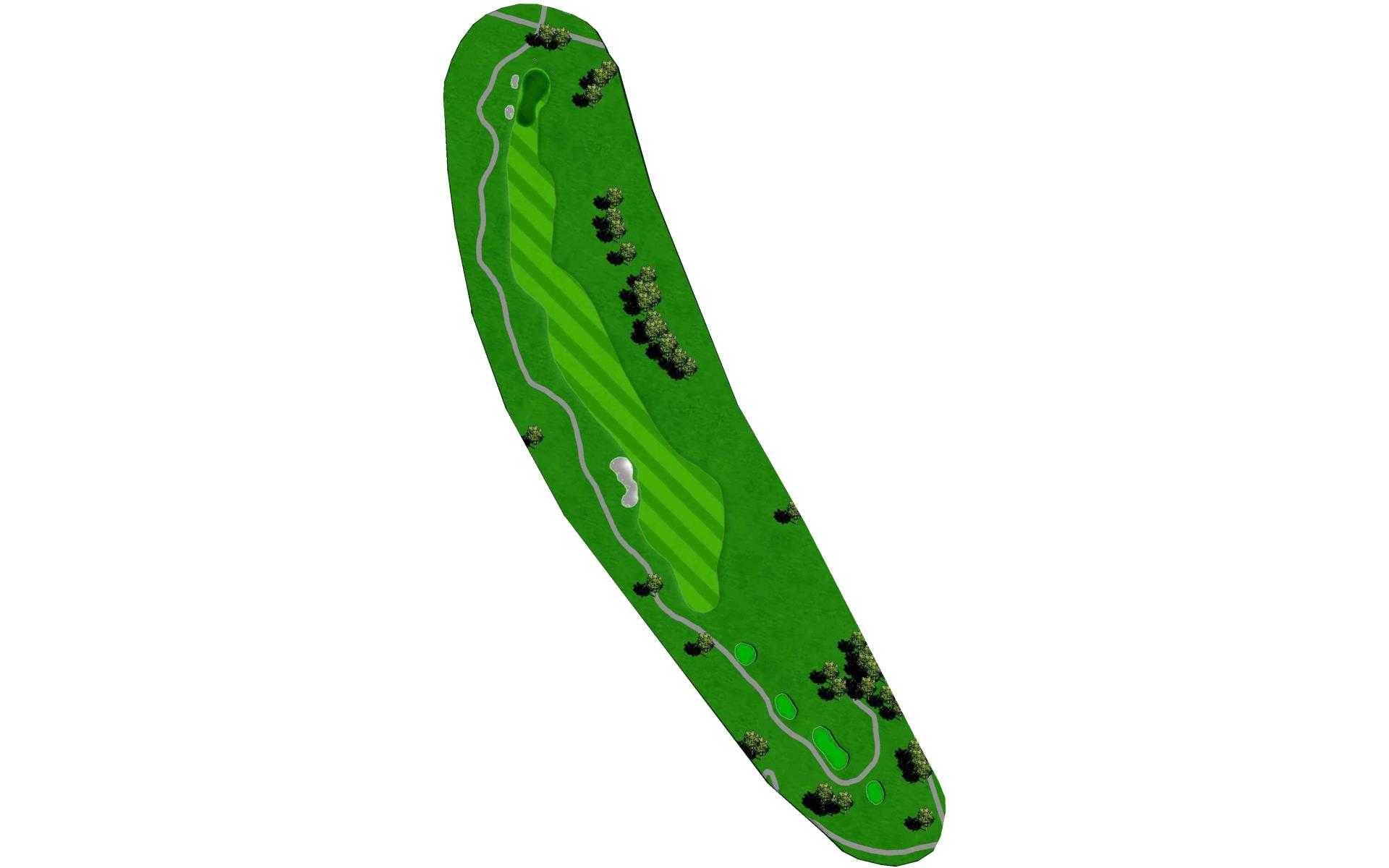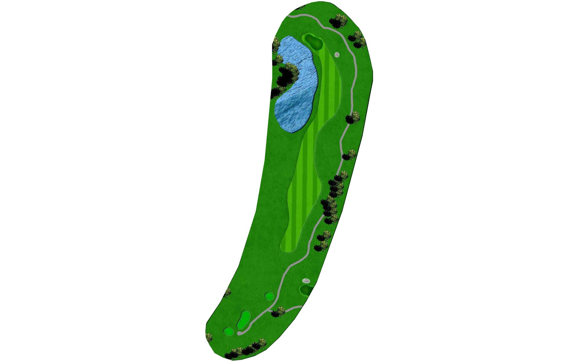Hole 13 is a par 3 with a narrow green in the front with a large bunker on the right side. For your tee shot play to the center of the green and play for par.