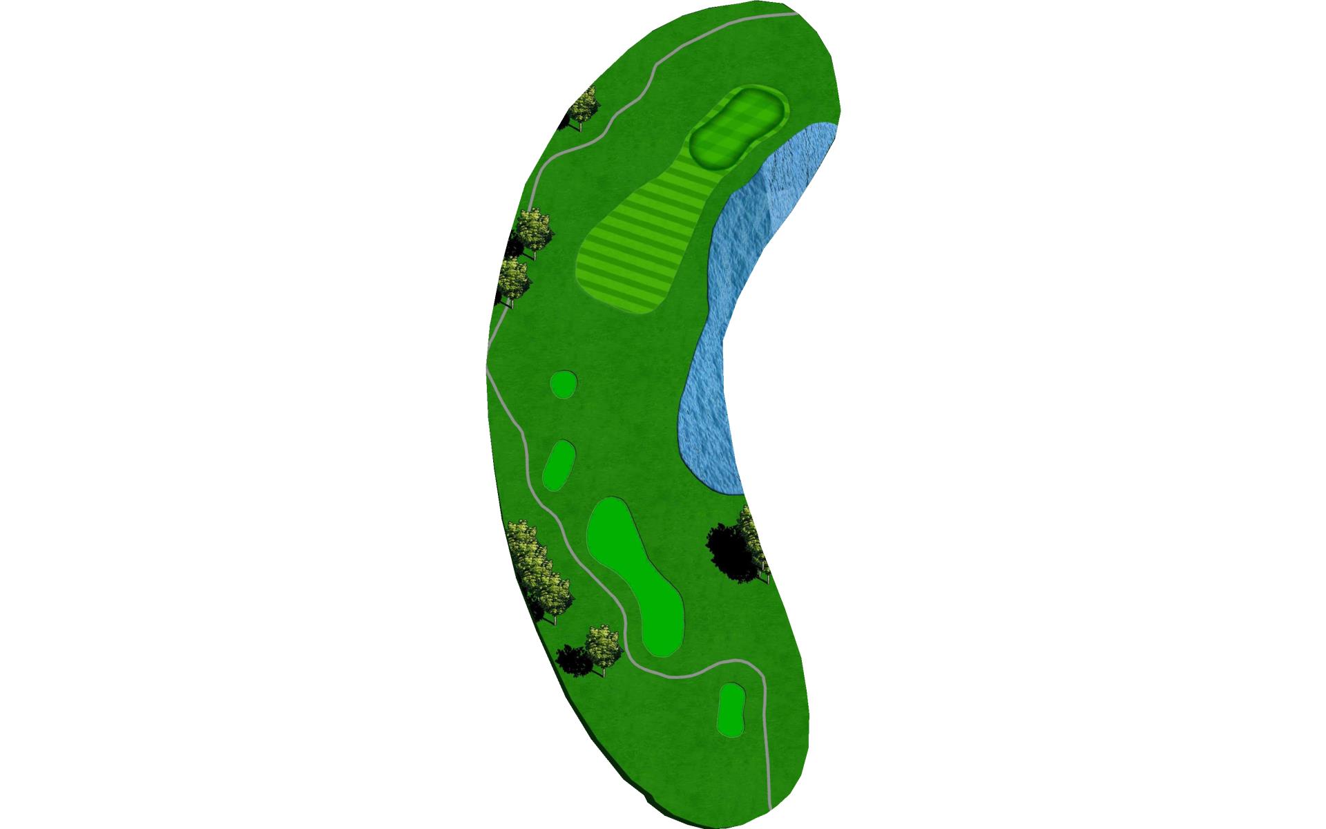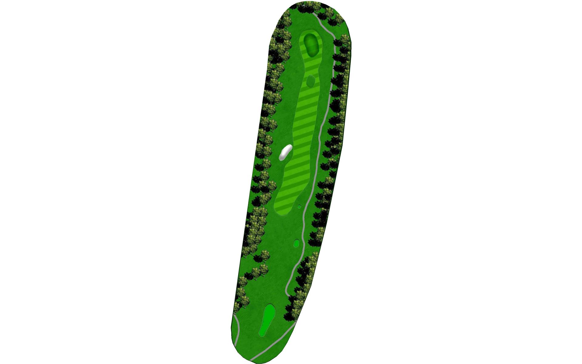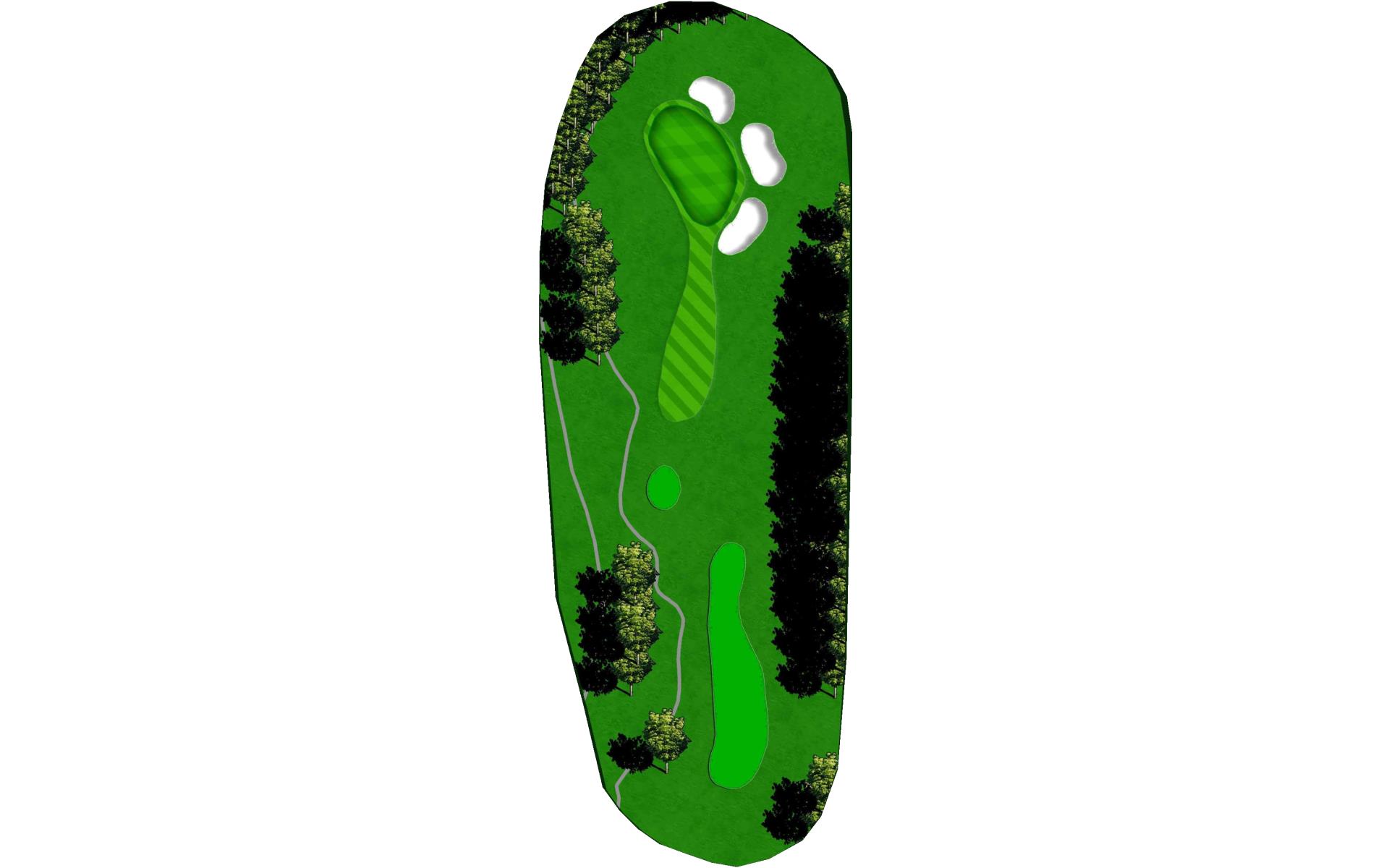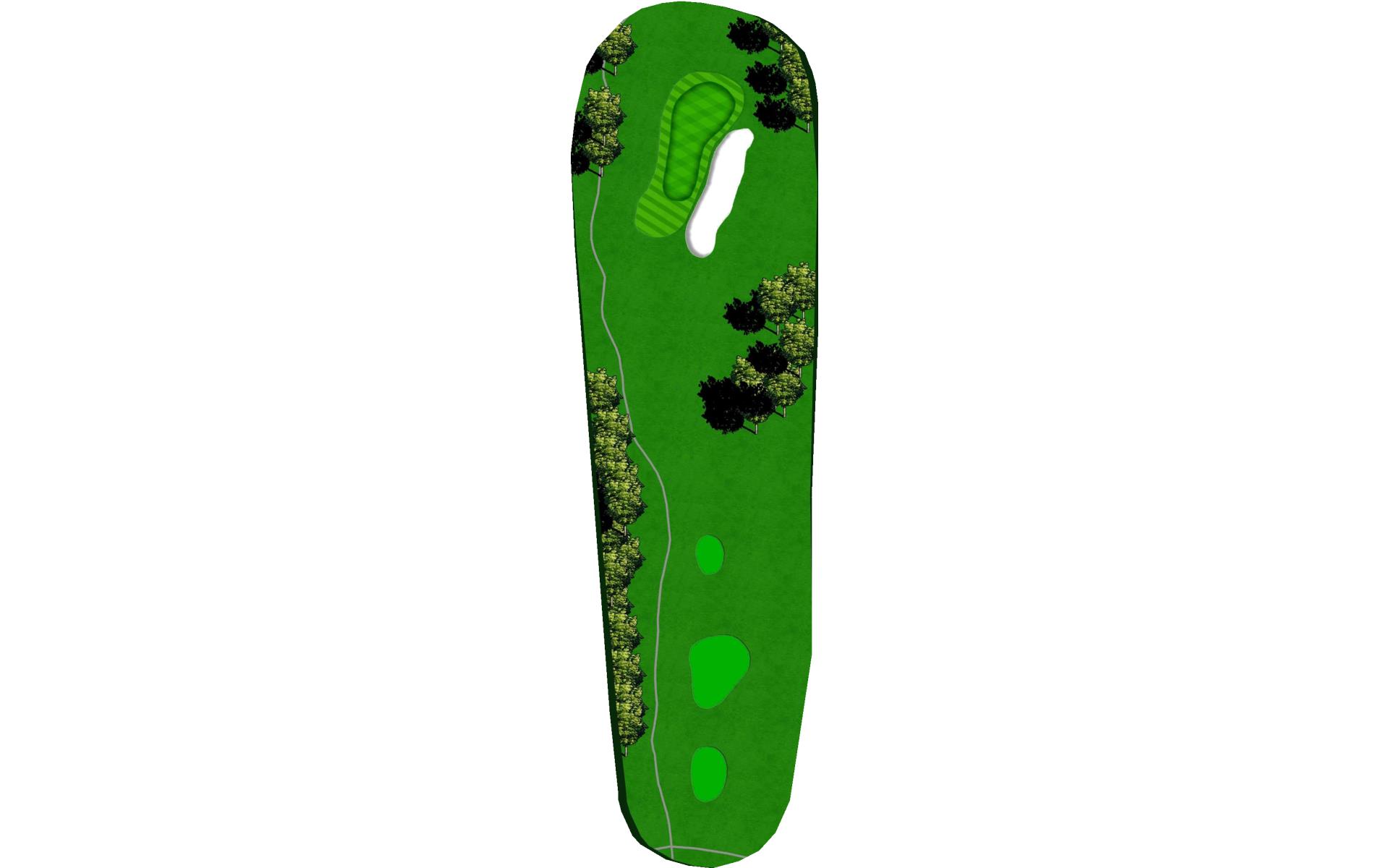 Hole 13 is a par 3 with a narrow green in the front with a large bunker on the right side. For your tee shot play to the center of the green and play for par.