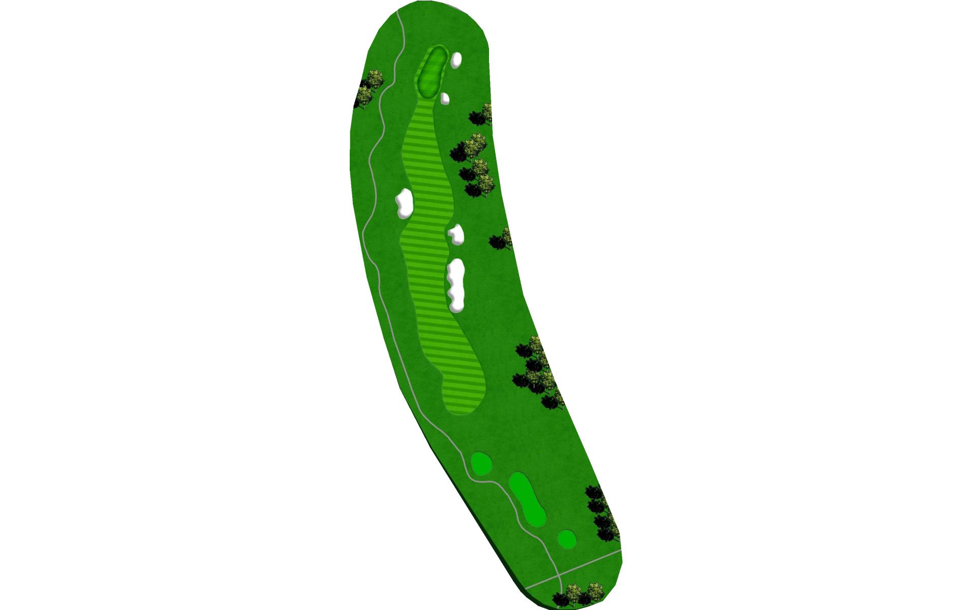 A relatively short par 4 with a wide fairway. Favor the right side of the fairway from the tee. A strong tee shot will lead to a mid to short iron into the green. Fairway bunker on the left can be avoided by favoring the right center or right side of fairway. Your approach will require some height in order to stop the ball quickly. The first bounce on this green is typically a firm one, so play for some release.