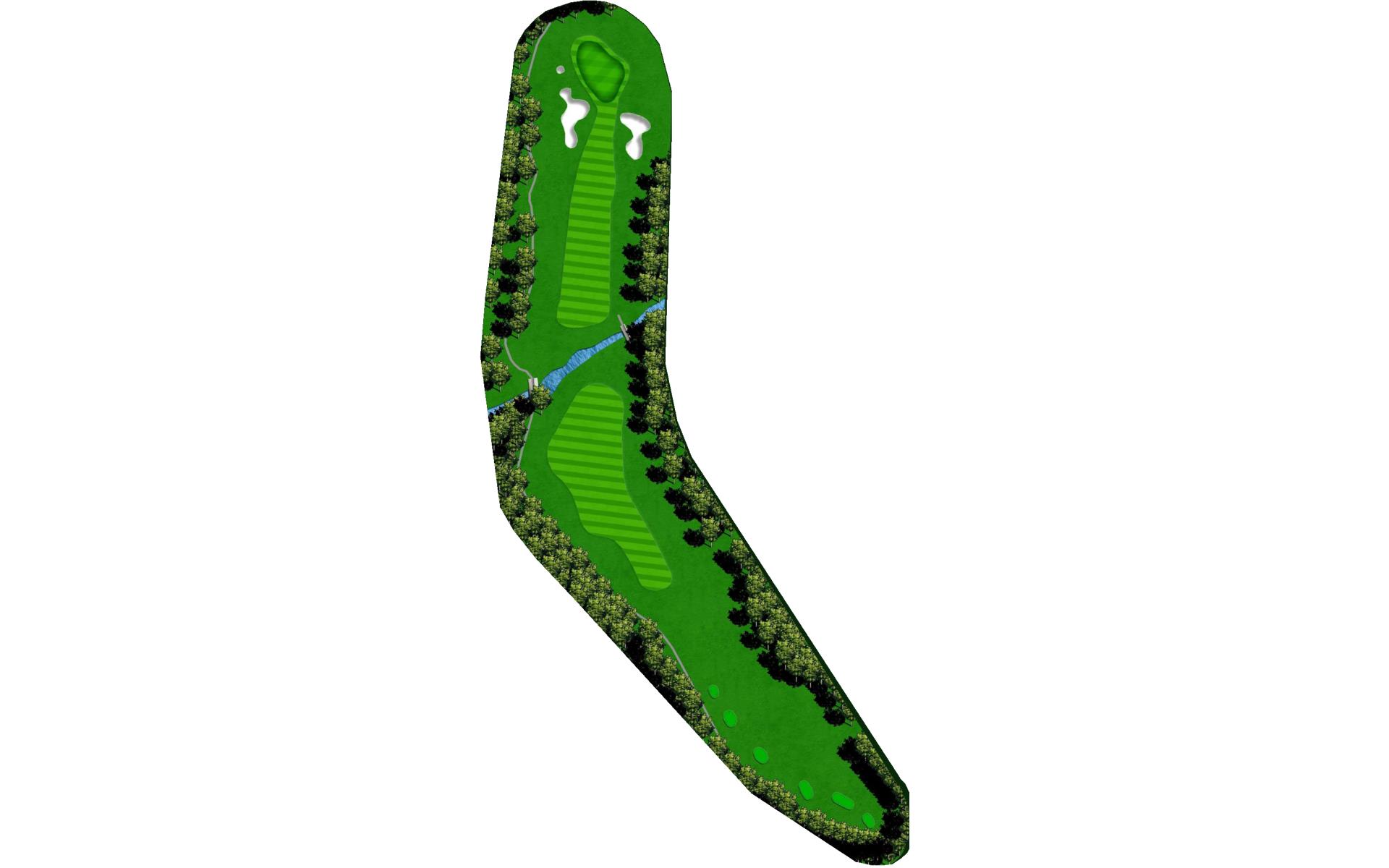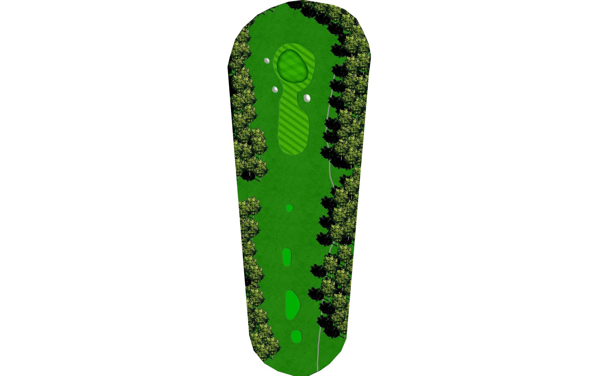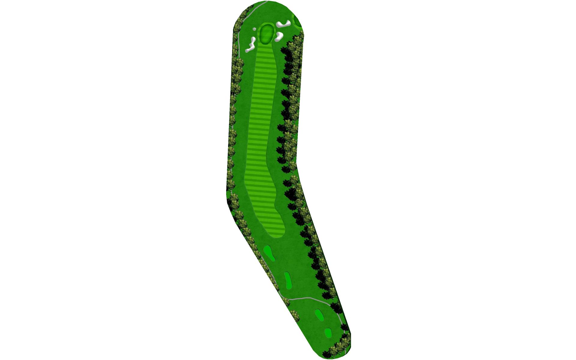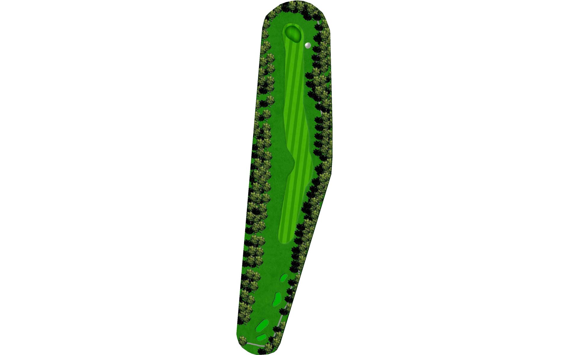 The last of the par 5s requires a good drive down the left center to have any chance at reaching it in two. The best way to approach this hole is to plan for a 3 shot routine. A good layup will leave a short wedge shot into a sloped green. The green is well protected with bunkers, but there is plenty of green to work with.