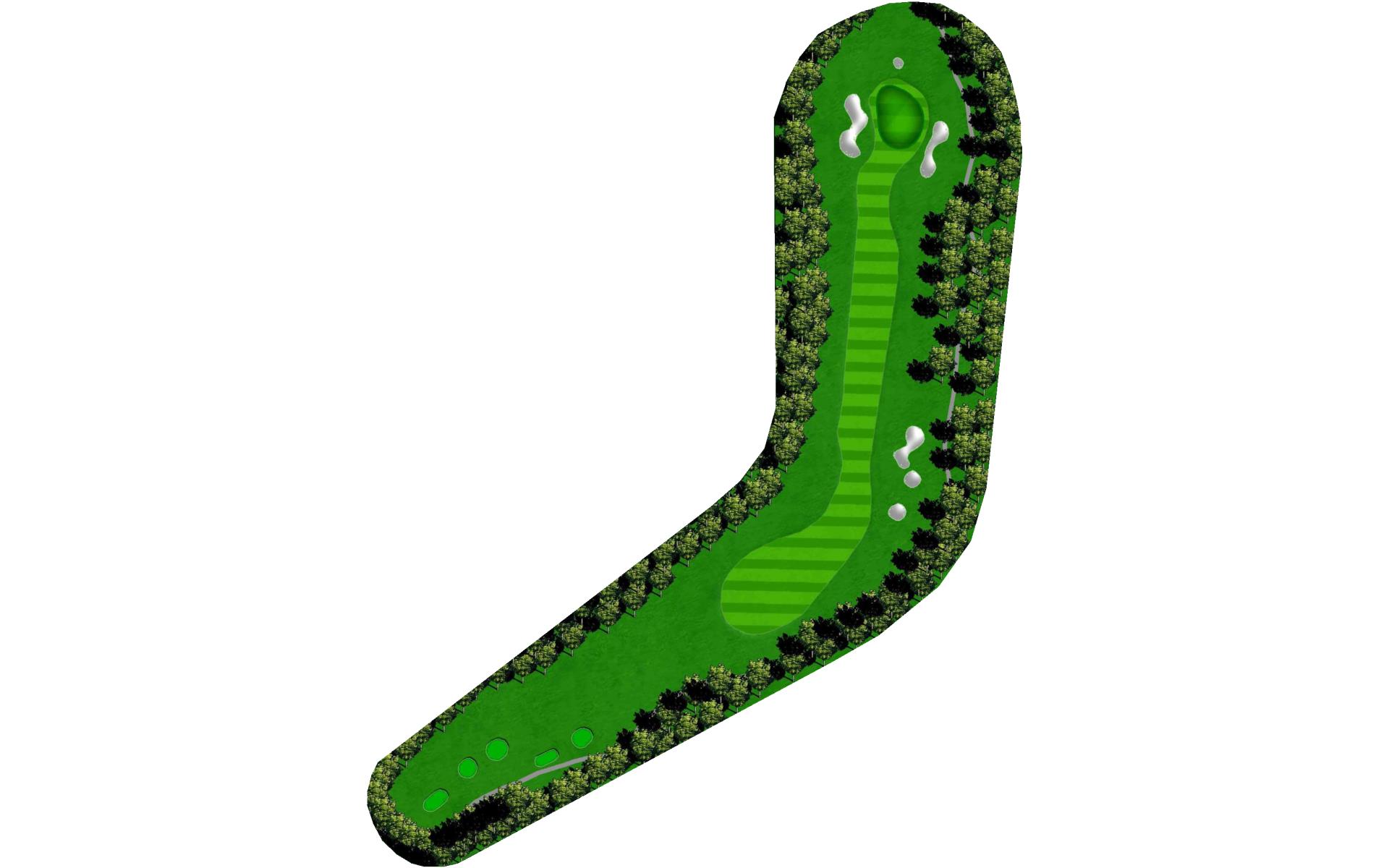 A straight away par 3 with plenty of length. This hole requires a well struck long iron, with bunkers surrounding the green. The green is relatively flat, so an easy pitch or putt would be well within reach.