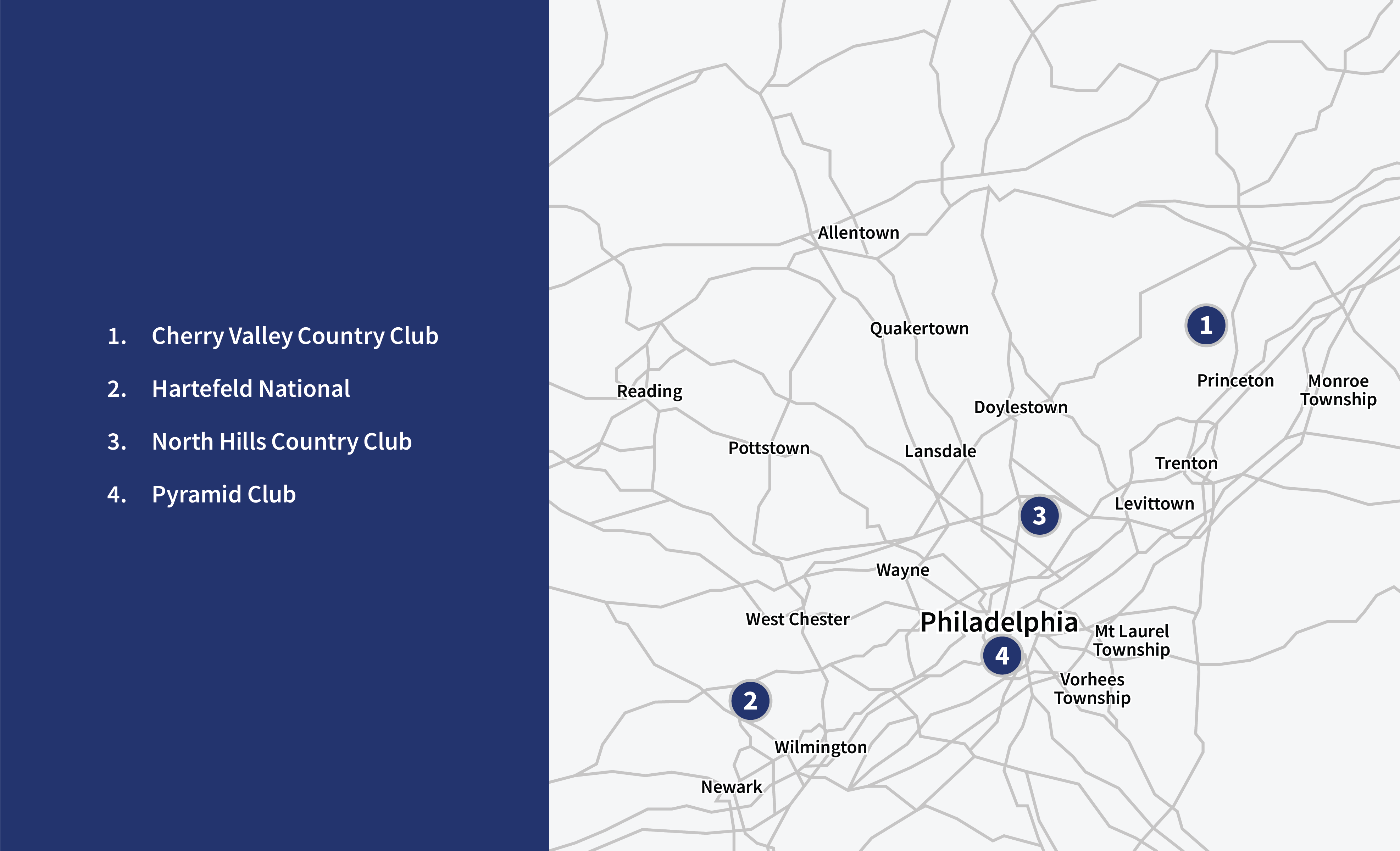 Explore our 3 Philadelphia-area country clubs to find the best club for you. Whether you're hosting a corporate event or looking for a premier venue for team-building, our clubs offer the ideal setting for your next event.